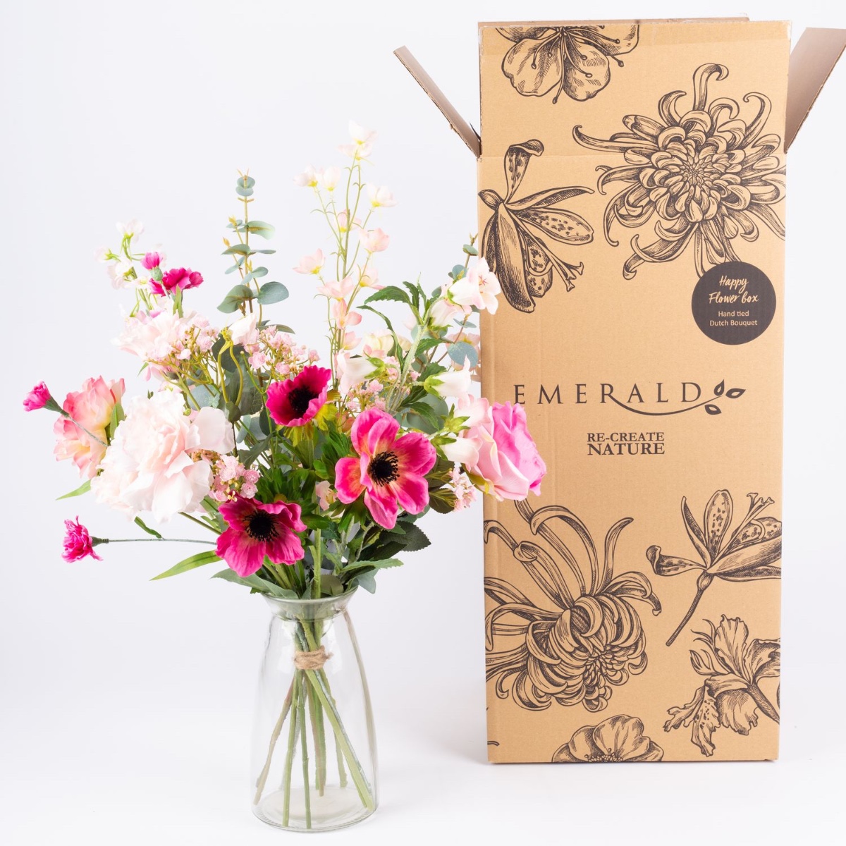 Les femmes aiment le rose fuchsia. Ce mois court n'est pas seulement marqué par l'attente du printemps, c'est aussi le mois de la Saint-Valentin. Des fleurs rose pâle combinées à du fuchsia vif sont tout à fait appropriées, car de nombreuses femmes apprécient les « couleurs de filles ». La couleur rose fuchsia renforce tous les sentiments positifs et apaise l'agressivité. Ce bouquet ne se contente donc pas d'apporter de la couleur à une ambiance encore hivernale, il a également un effet formidable sur l'humeur de vos visiteurs.