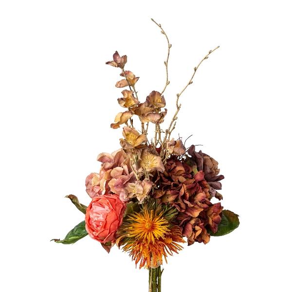 Bouquet de chardon boule, de rose et d'hortensia artificiel PRINZY, orange-saumon-vieux rose, 60cm