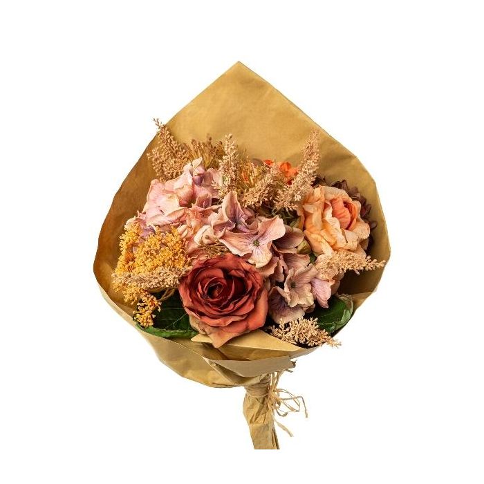Bouquet de de rose, d'hortensia et de skimmia artificiel FORTA, orange-saumon-vieux rose, 50cm