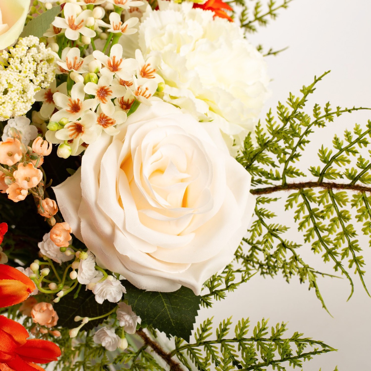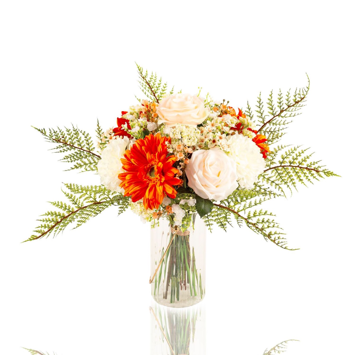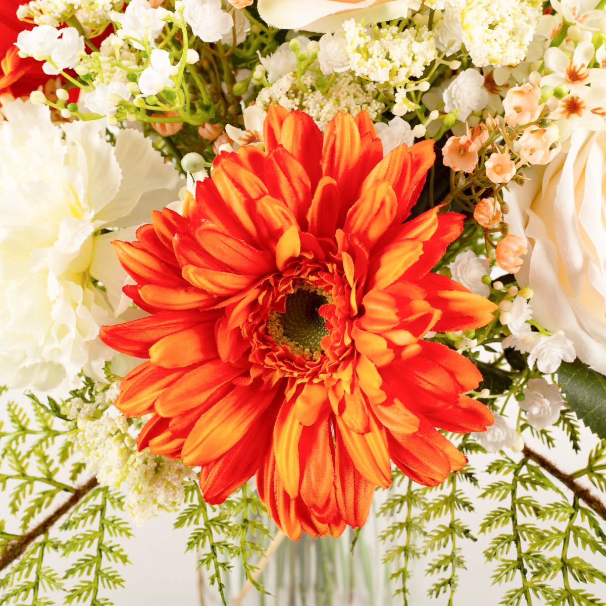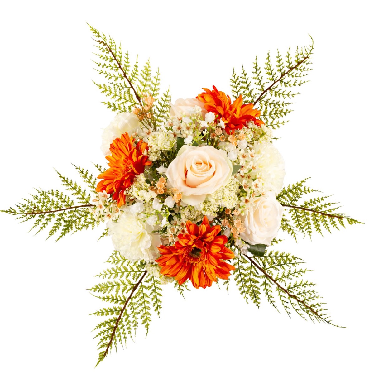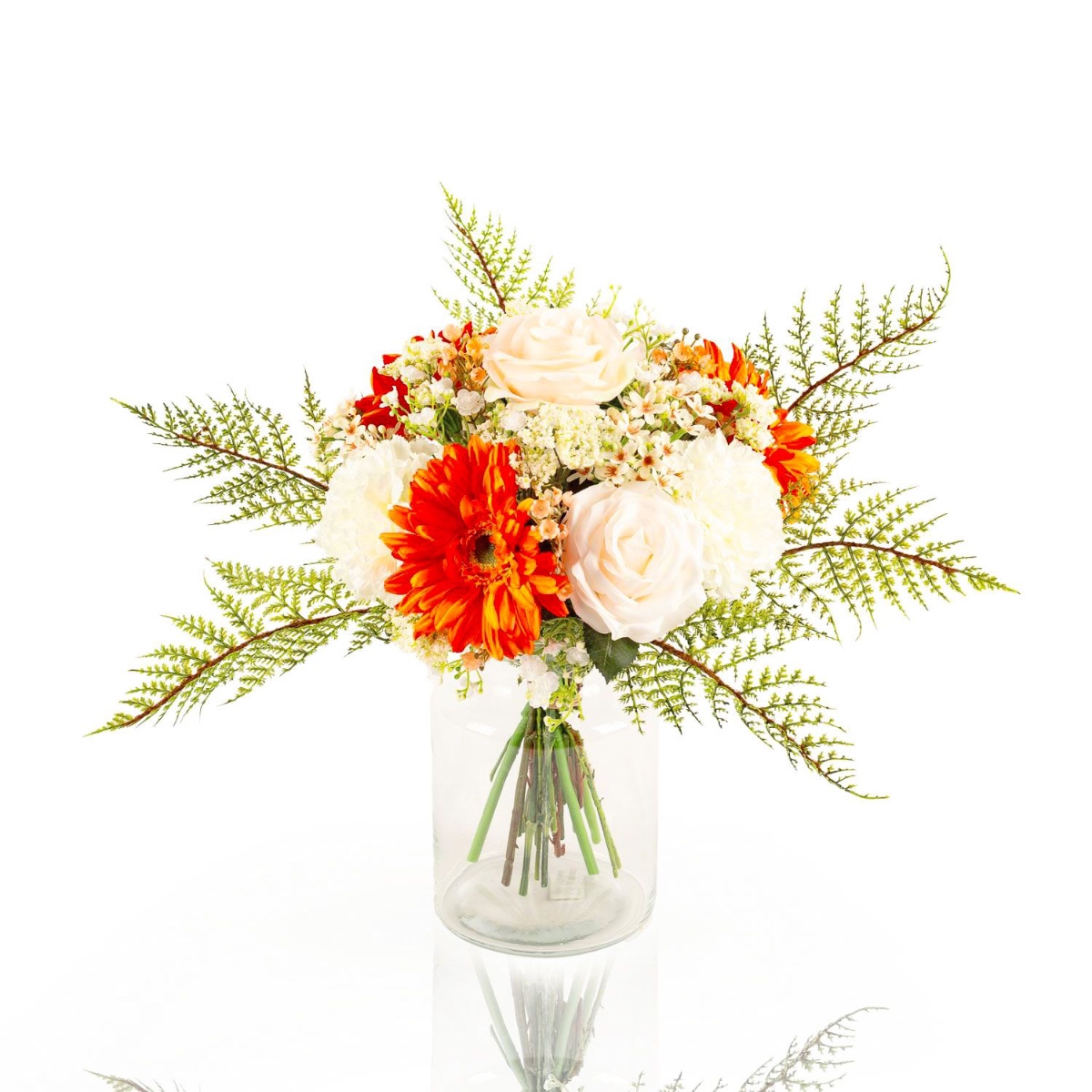 Bouquet de fleurs artificiel MALIA, gerberas, roses, et œillets, orange, 40cm, Ø30cm