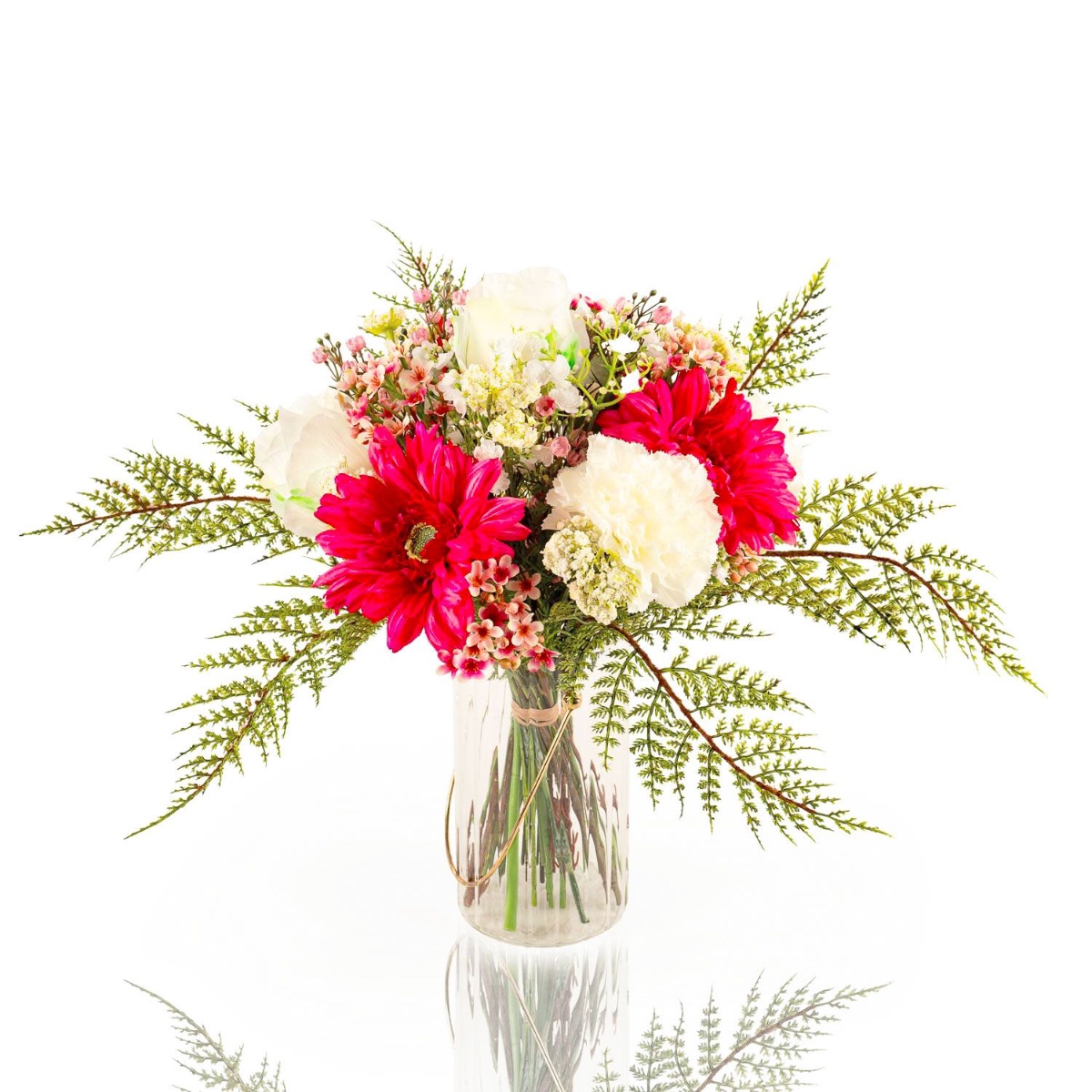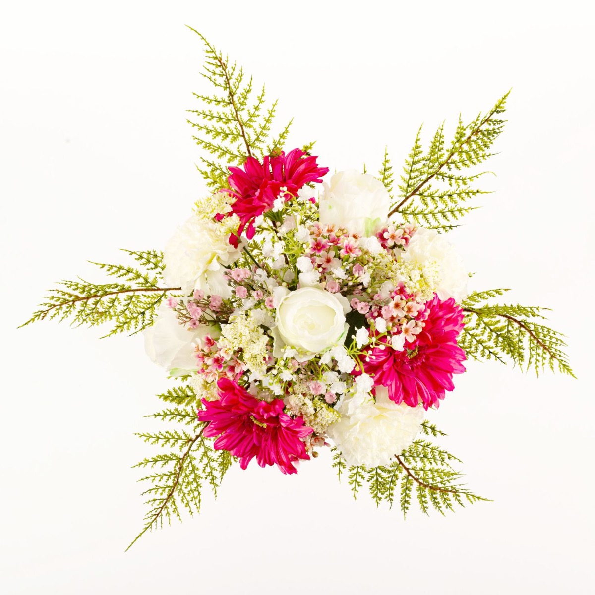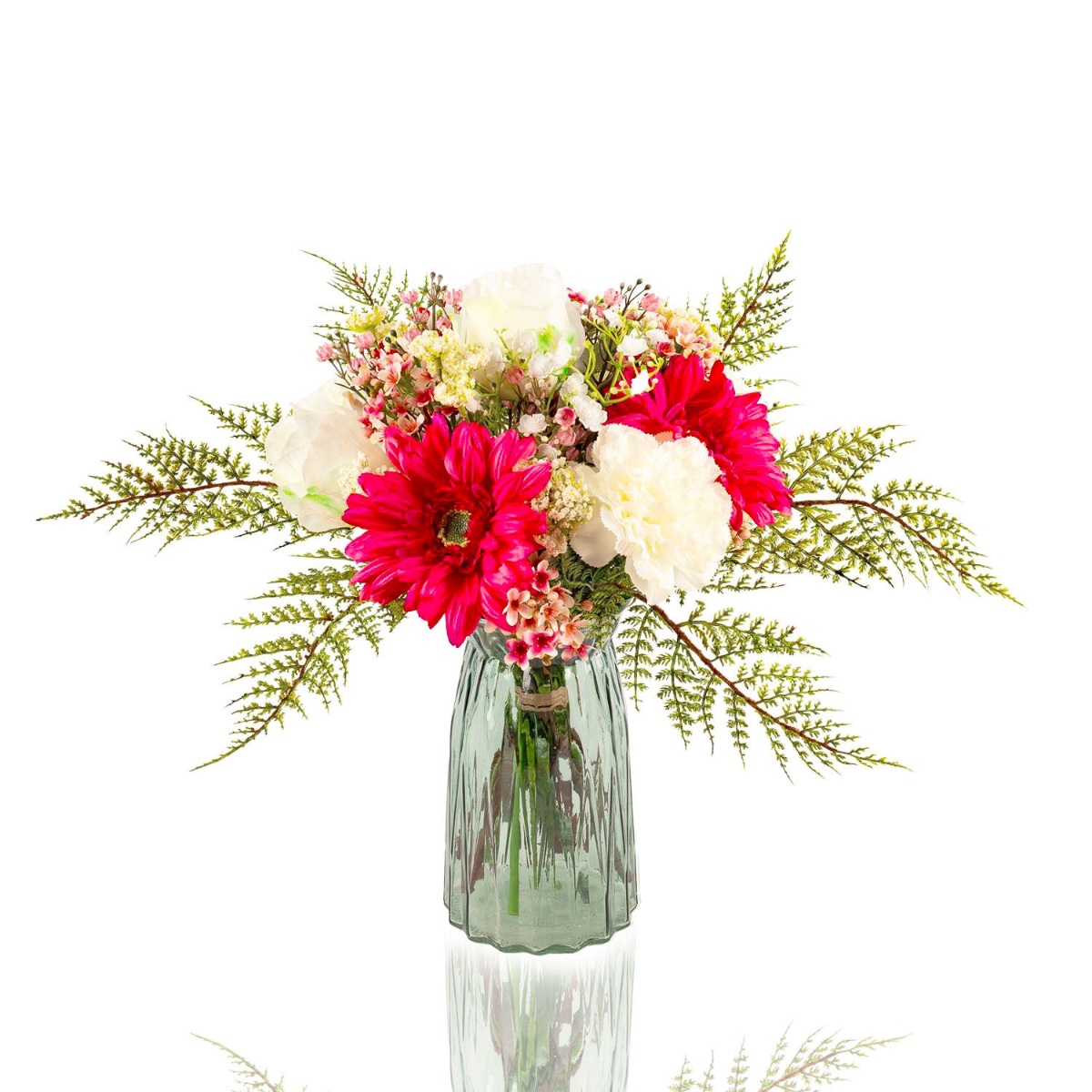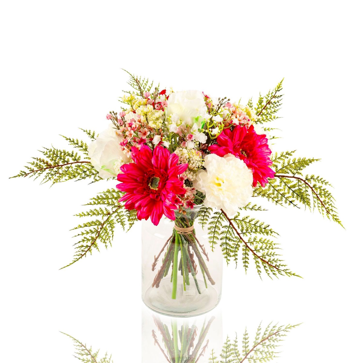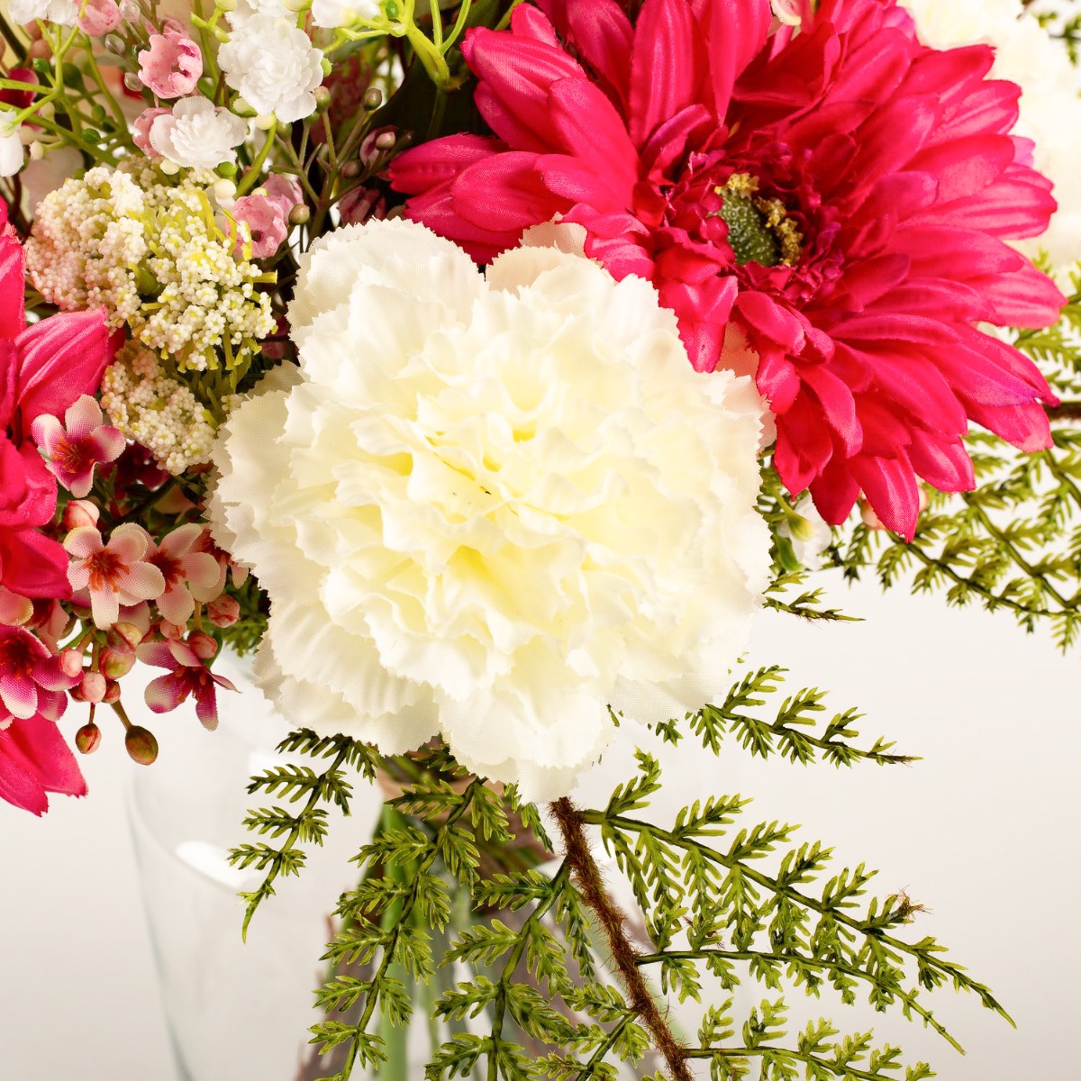 Bouquet de fleurs artificiel MALIA, gerberas, roses, et œillets, rose fuchsia, 40cm, Ø30cm