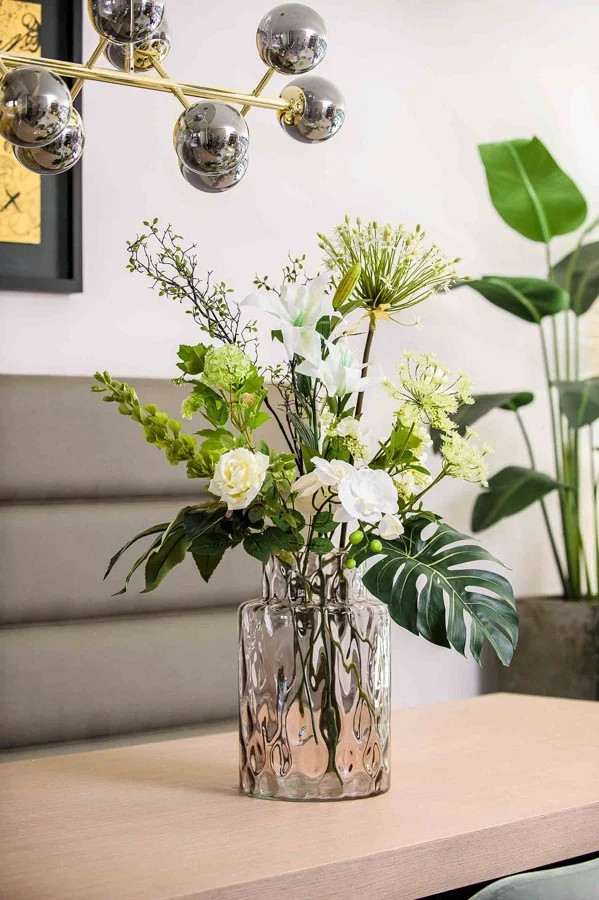 Le bouquet artificiel relié à la main FEME épatera par son design minimaliste et élégant dans la décoration de diverses occasions. Avec ses couleurs simples, l'arrangement artificiel de grande qualité s'insérera harmonieusement dans le décor existant.