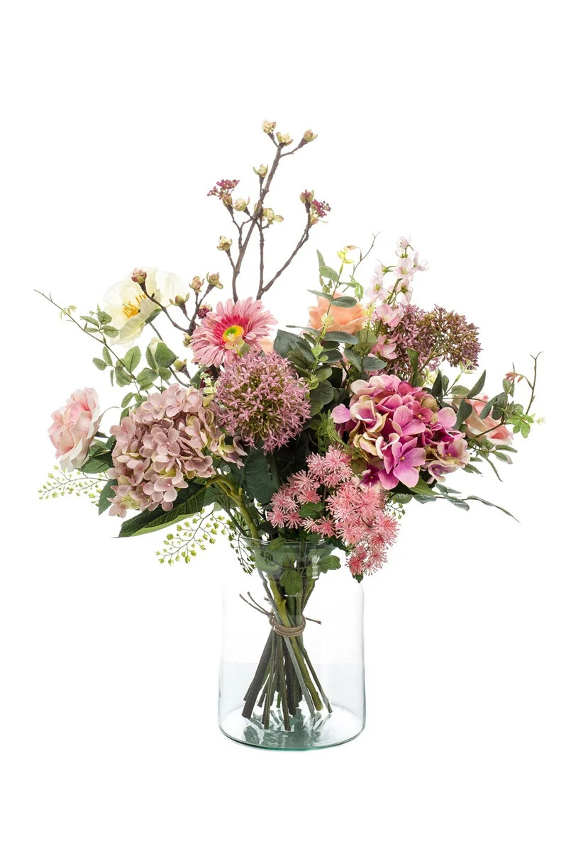 Le bouquet luxuriant artificiel FEME est soigneusement lié à la main. Ce ne sont pas seulement les couleurs roses qui feront de l'arrangement décoratif un rêve de fille; le mélange harmonieux d'une grande variété de fleurs fera briller le décor.