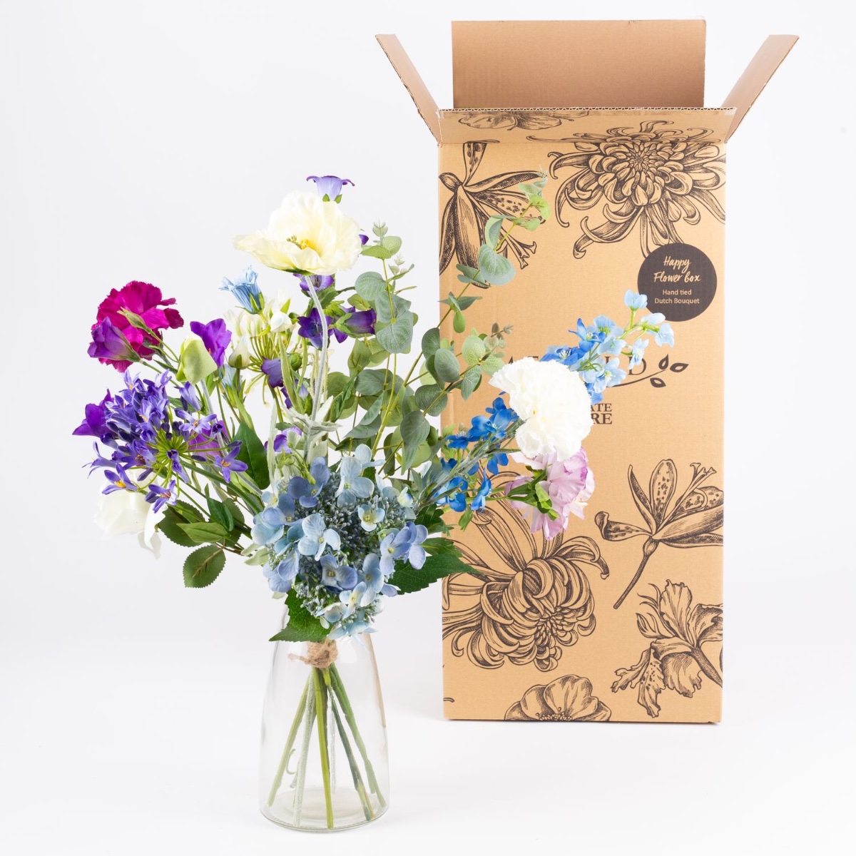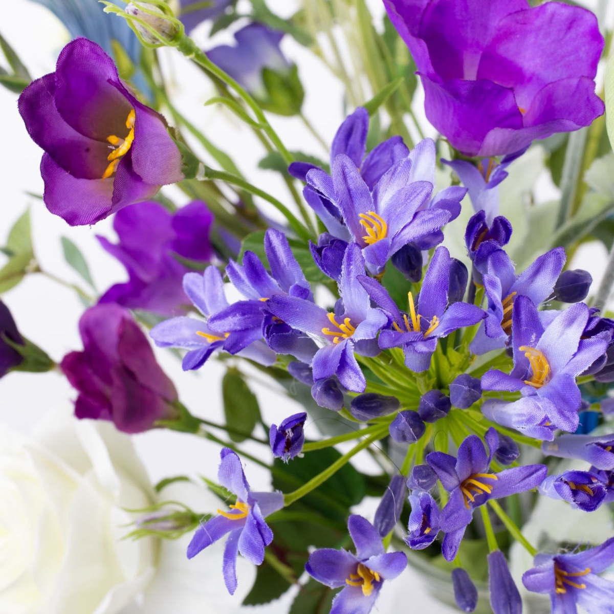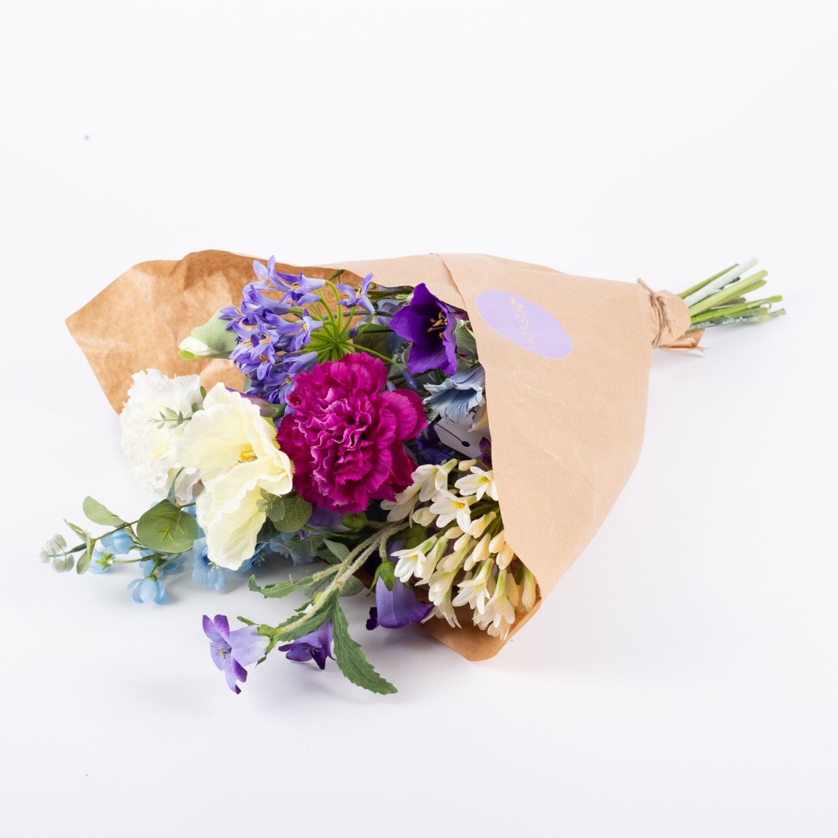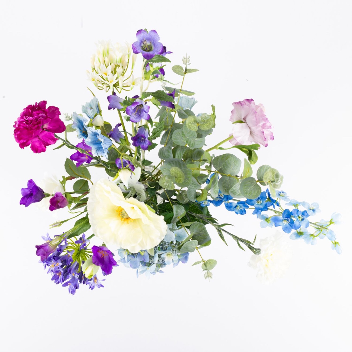 - Bouquet artificiel AVIL composé des produits suivants ou au moins équivalents : hortensia et agapanthe luxuriants, renoncule rêveuse, rose élégante, joli œillet, coquelicot délicat, campanule et pied d'alouette à longues tiges, beau lisianthus et eucalyptus comme accessoires