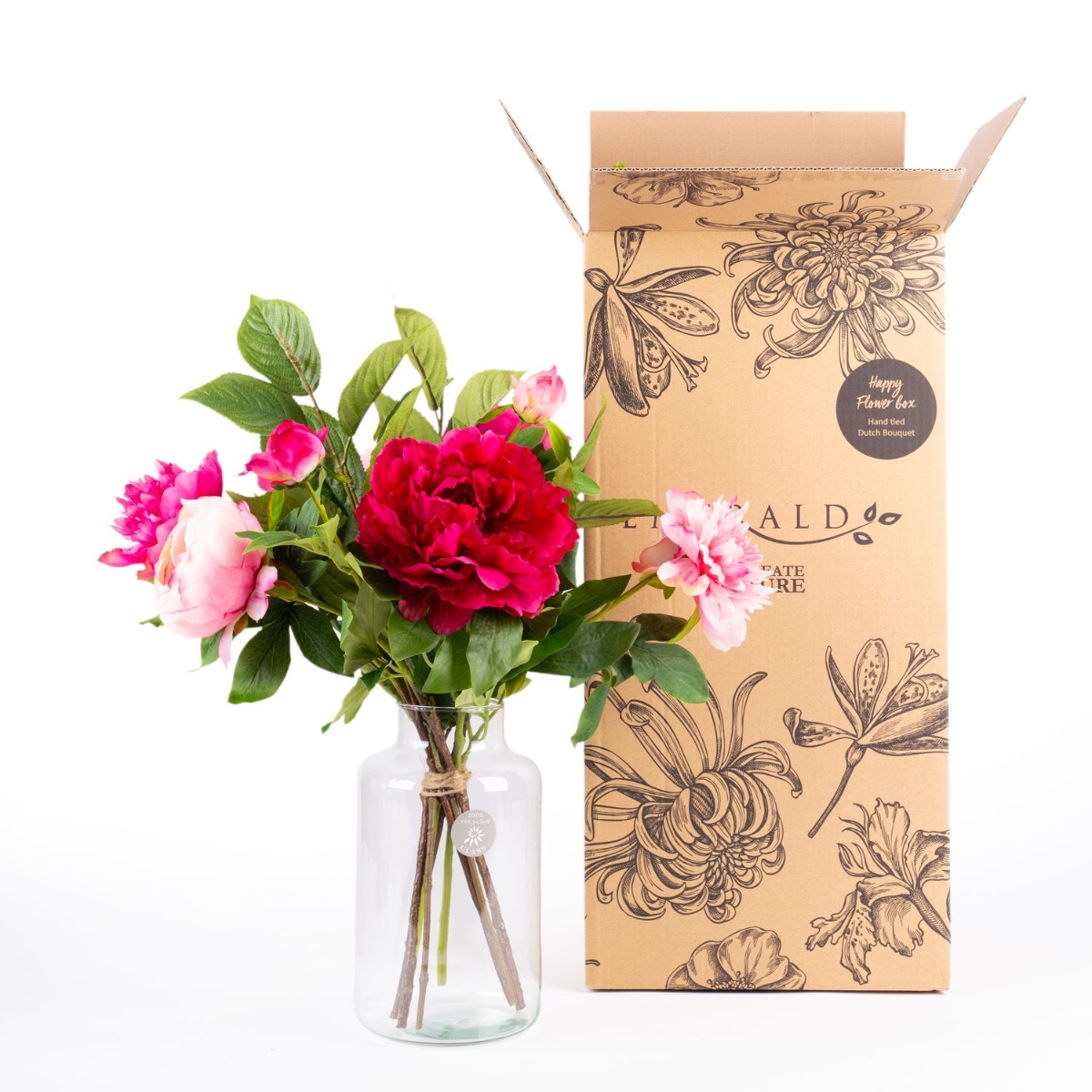 - Bouquet artificiel PALESA composé des produits suivants ou au moins équivalents : Différentes jolies pivoines et des branches de cerisier comme accessoire