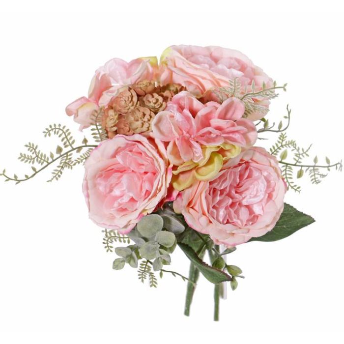 Bouquet de roses artificielles SIERRA, hortensia, echeveria, rose, 25cm, Ø25cm