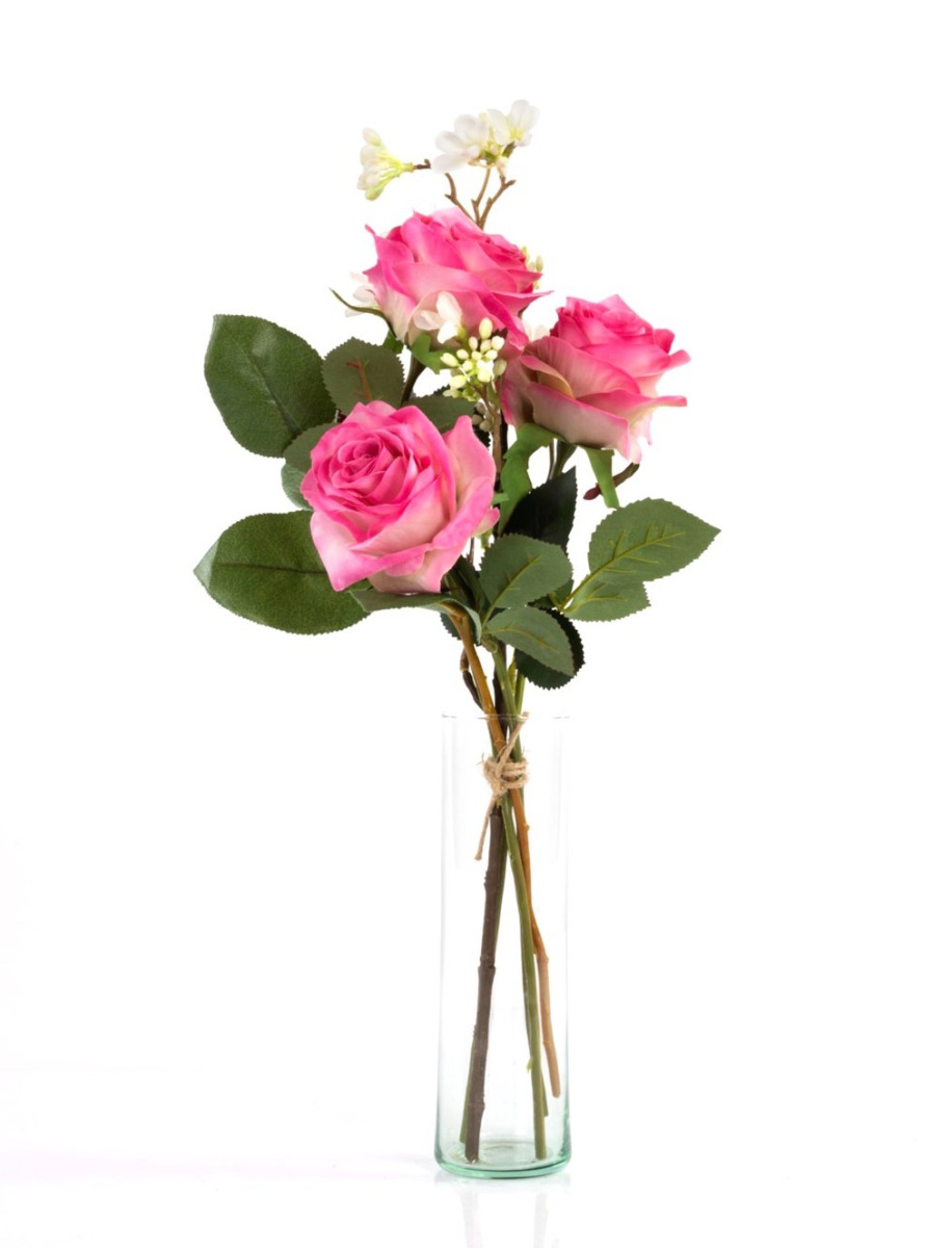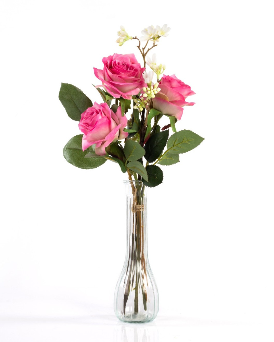 Bouquet de roses artificielles SIMONY, avec feuilles, fuchsia, 45cm, Ø20cm