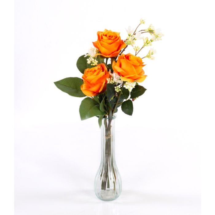Bouquet de roses artificielles SIMONY, avec feuilles, orange, 45cm, Ø20cm