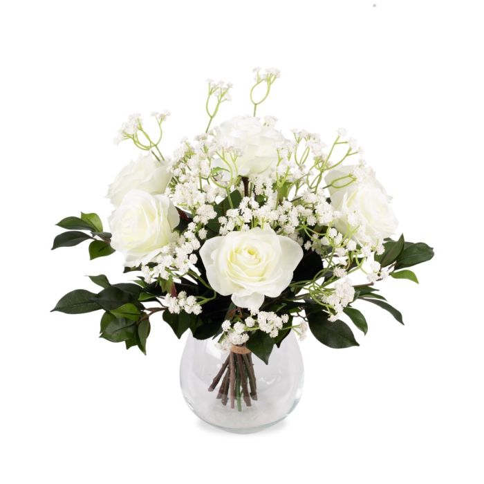 Bouquet de roses en soie ELLI, gypsophile, crème-rose, 35cm, Ø30cm