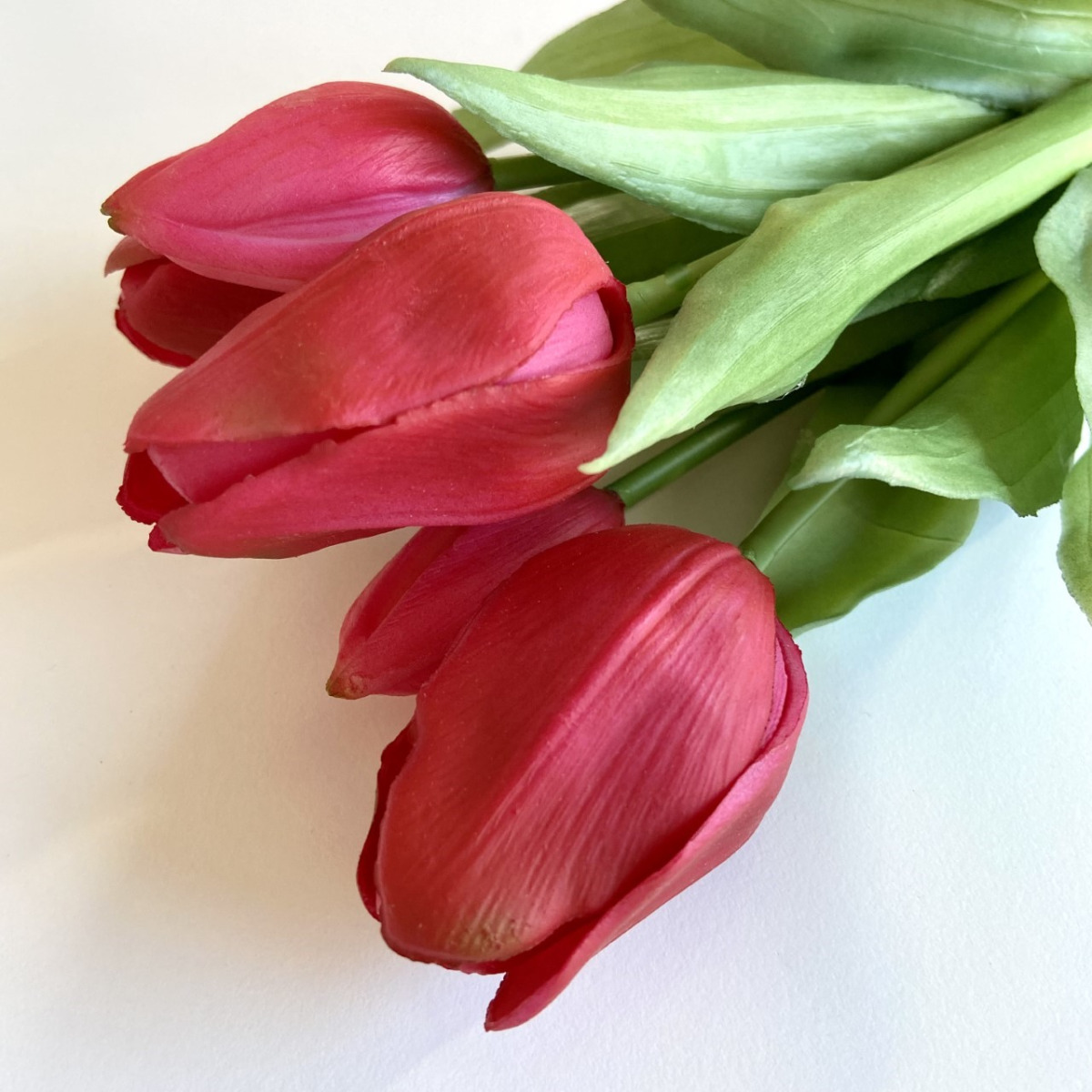 Bouquet de tulipes artificielles LEANA, rose fuchsia-vert, 30cm, Ø20cm
