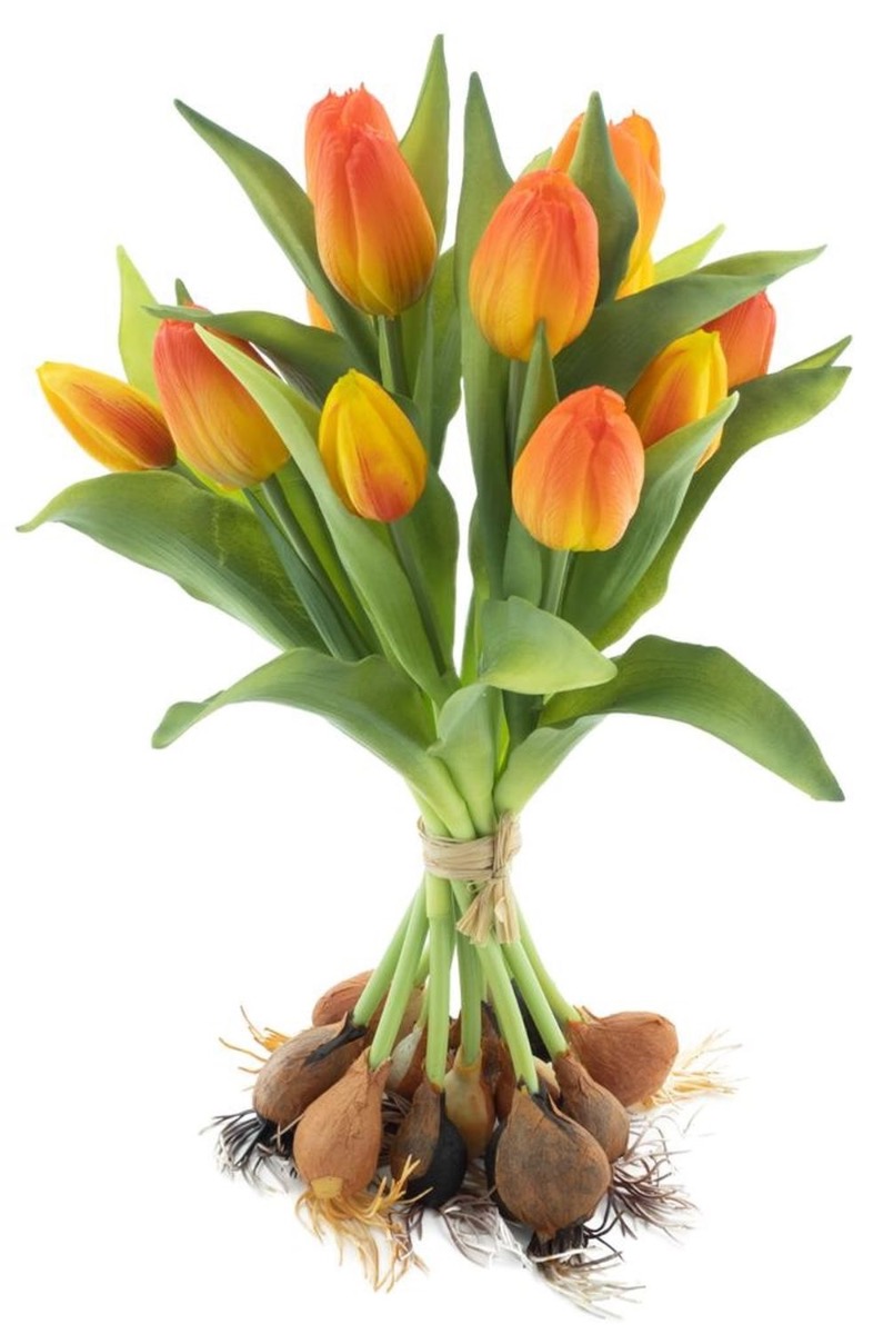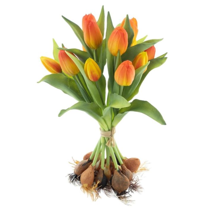 Bouquet de tulipes artificielles LONA avec des bulbes, orange-jaune, 35cm, Ø25cm