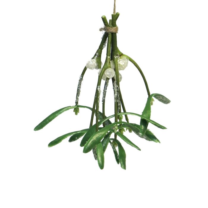 Bouquet décoratif de gui NUORAN, givré, fruits, vert, 15cm