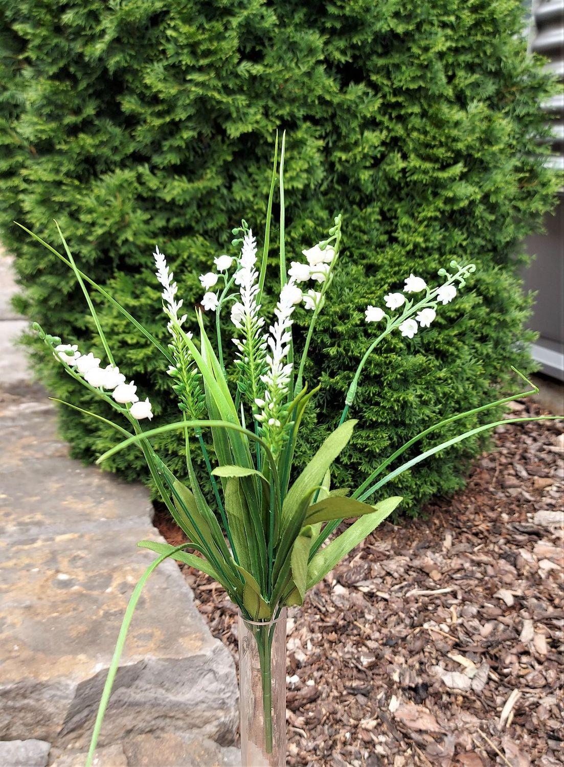 Bouquet décoratif SIVIKELO, muguet, lavande, piquet, blanc, 40cm
