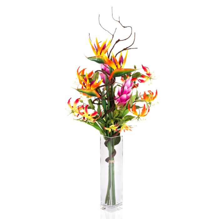 Bouquet du paradis SALOA, Strelitzia et Gloriosa, orange, 95cm, Ø35cm