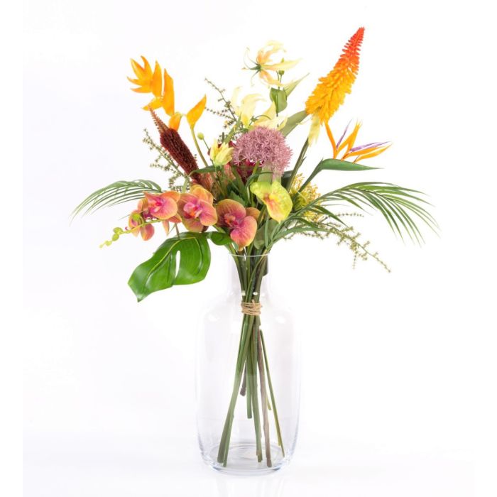 Bouquet paradisiaque artificiel OHANA, orchidée, héliconia, multicolore, 85cm, Ø50cm