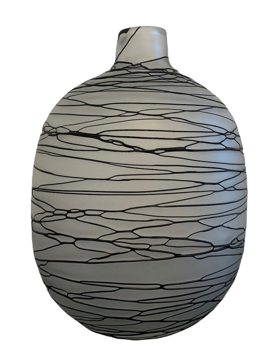 Bouteille en verre MILAGROS avec rayures, noir mat-transparent, 26cm, Ø19,5cm