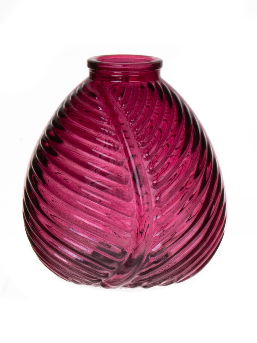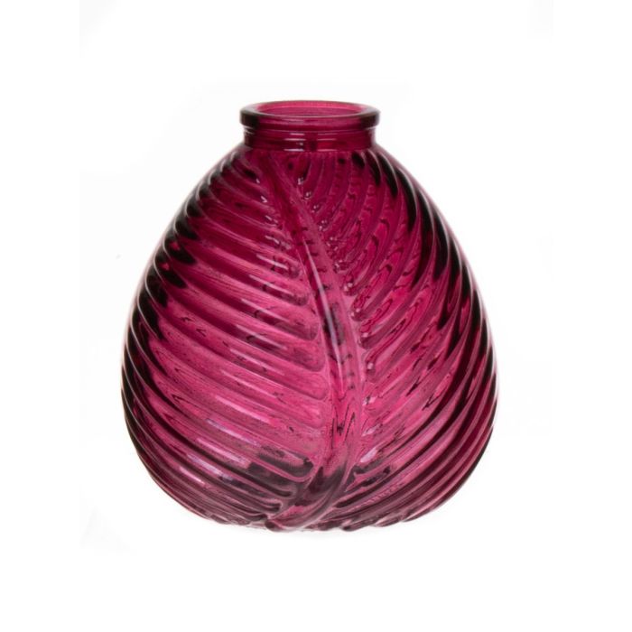 Bouteille en verre NELLOMIO avec structure de feuille, fuchsia-transparent, 13cm, Ø12cm