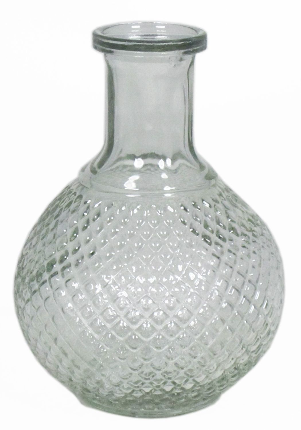Bouteille en verre transparent DONKA avec motif losange, 15cm, Ø11cm
