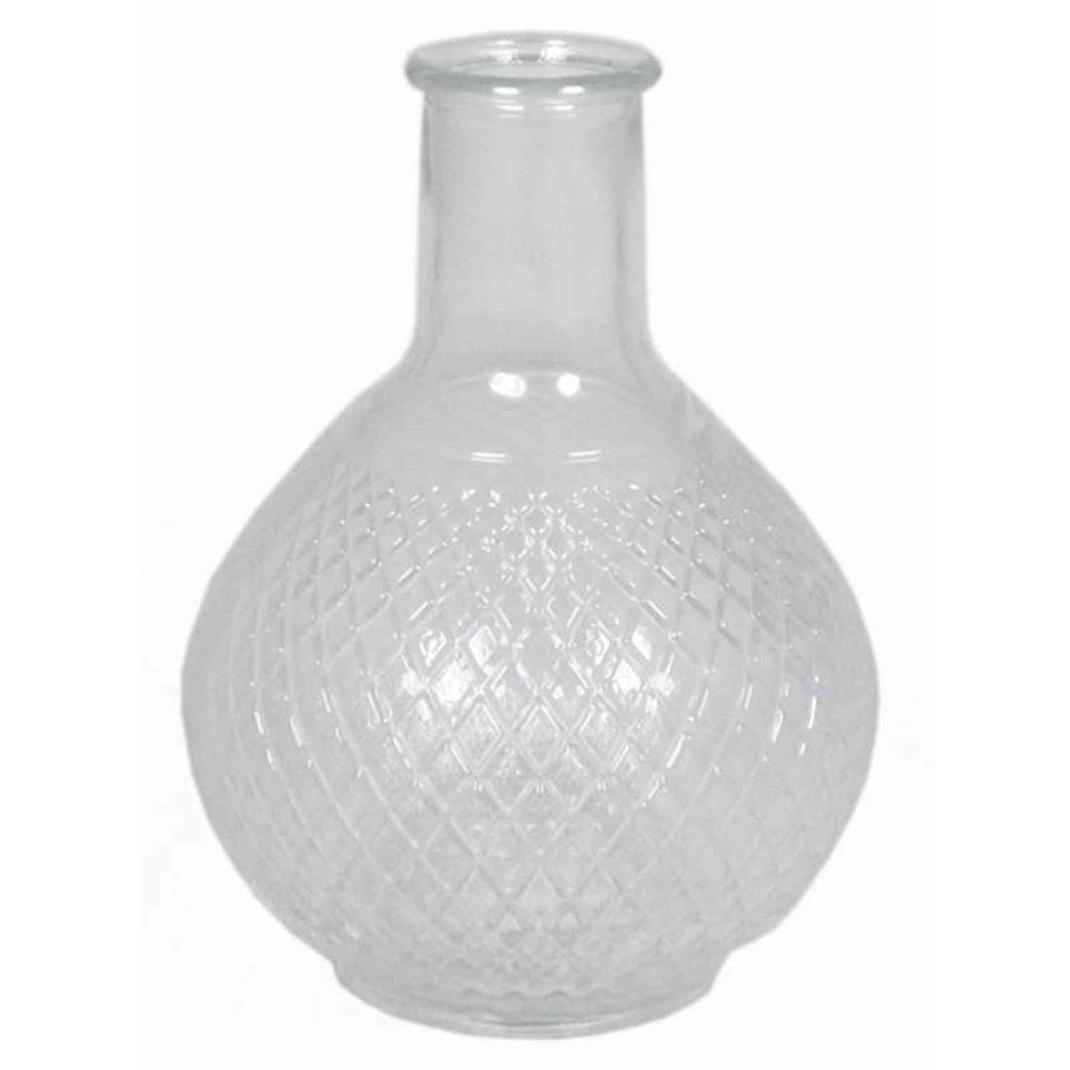 Bouteille en verre transparent DONKA avec motif losange, 18,5cm, Ø13,5cm