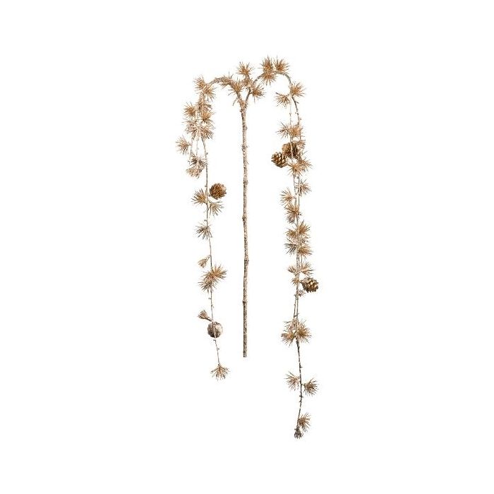 Branche artificielle Cèdre KROMEL avec des pommes de pin, suspendu, or métallique, 125cm