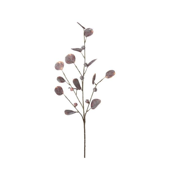 Branche artificielle d'eucalyptus TRAVON avec des fruits, aubergine, 75cm
