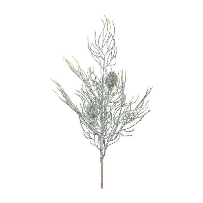 Branche artificielle de cyprès GRAVON avec des paillettes, pommes de pin, vert clair-gris, 60cm