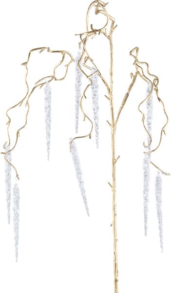 Branche artificielle de noisetier MONDEL avec des stalactites de glace, suspendu, or, 115cm