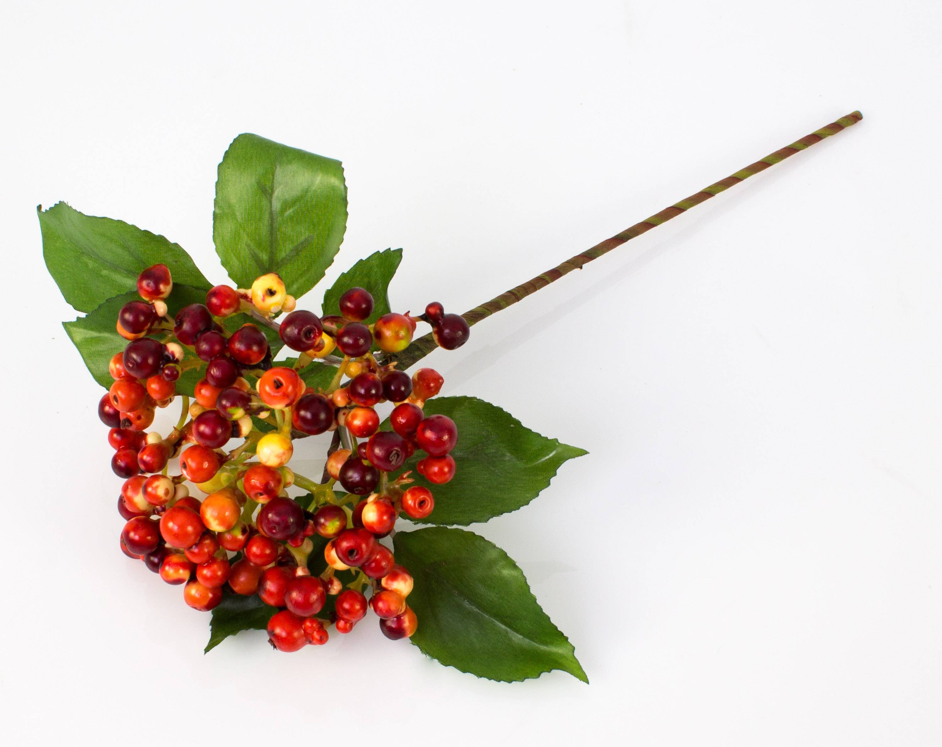 Branche artificielle de sureau HELMA avec baies, orange-rouge, 30cm