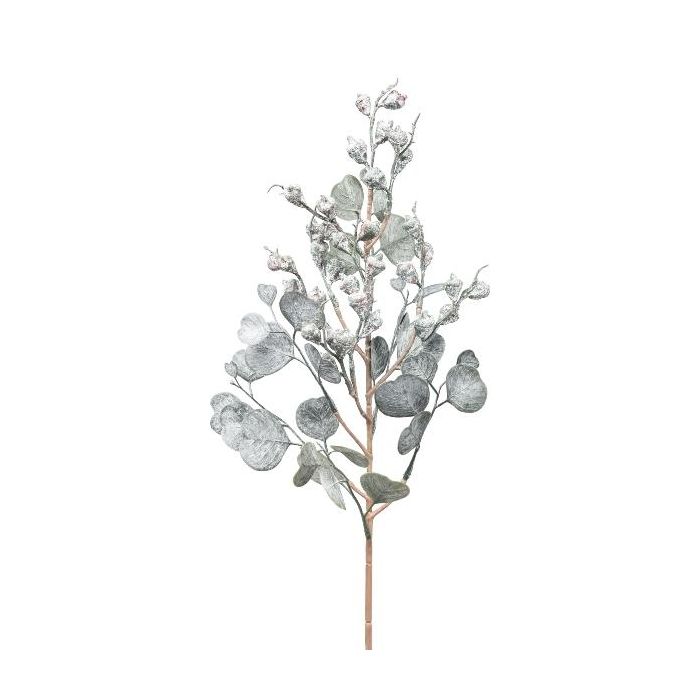 Branche artificielle Eucalyptus GRIFLO avec des fruits, givré, blanc-gris, 55cm