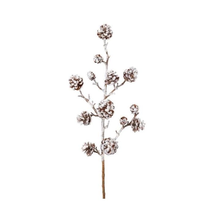 Branche artificielle Sapin JORFEN avec des pommes de pin, enneigé, blanc-brun, 60cm