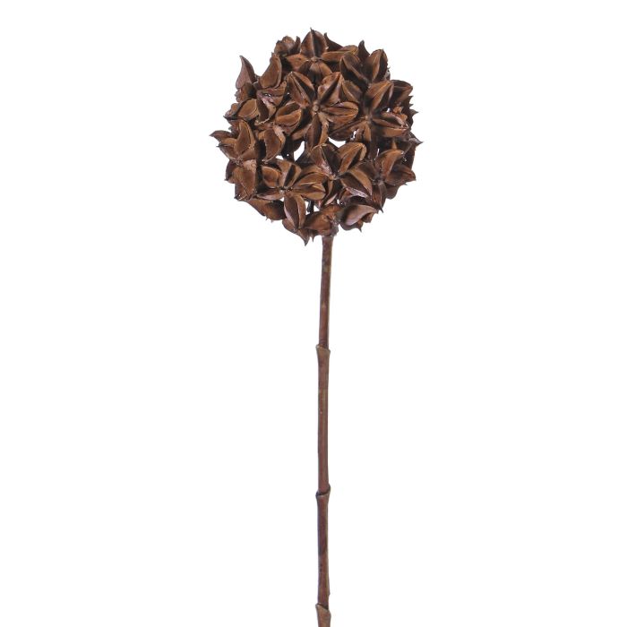 Fausse branche d'anis étoilé brune CATBERT. Avec une hauteur de 70 cm, elle peut être arrangée dans un grand vase à poser au sol avec d'autres fleurs artificielles.