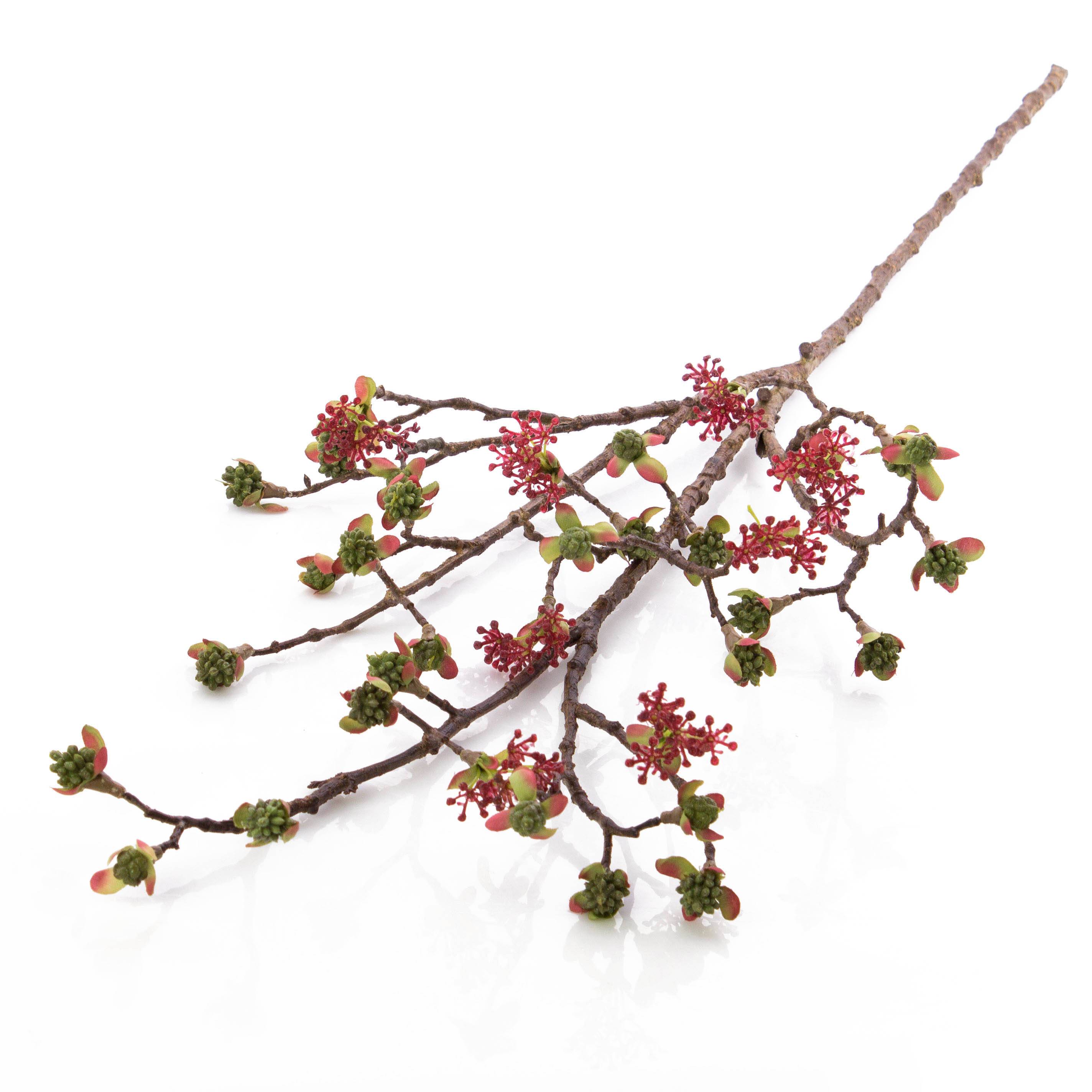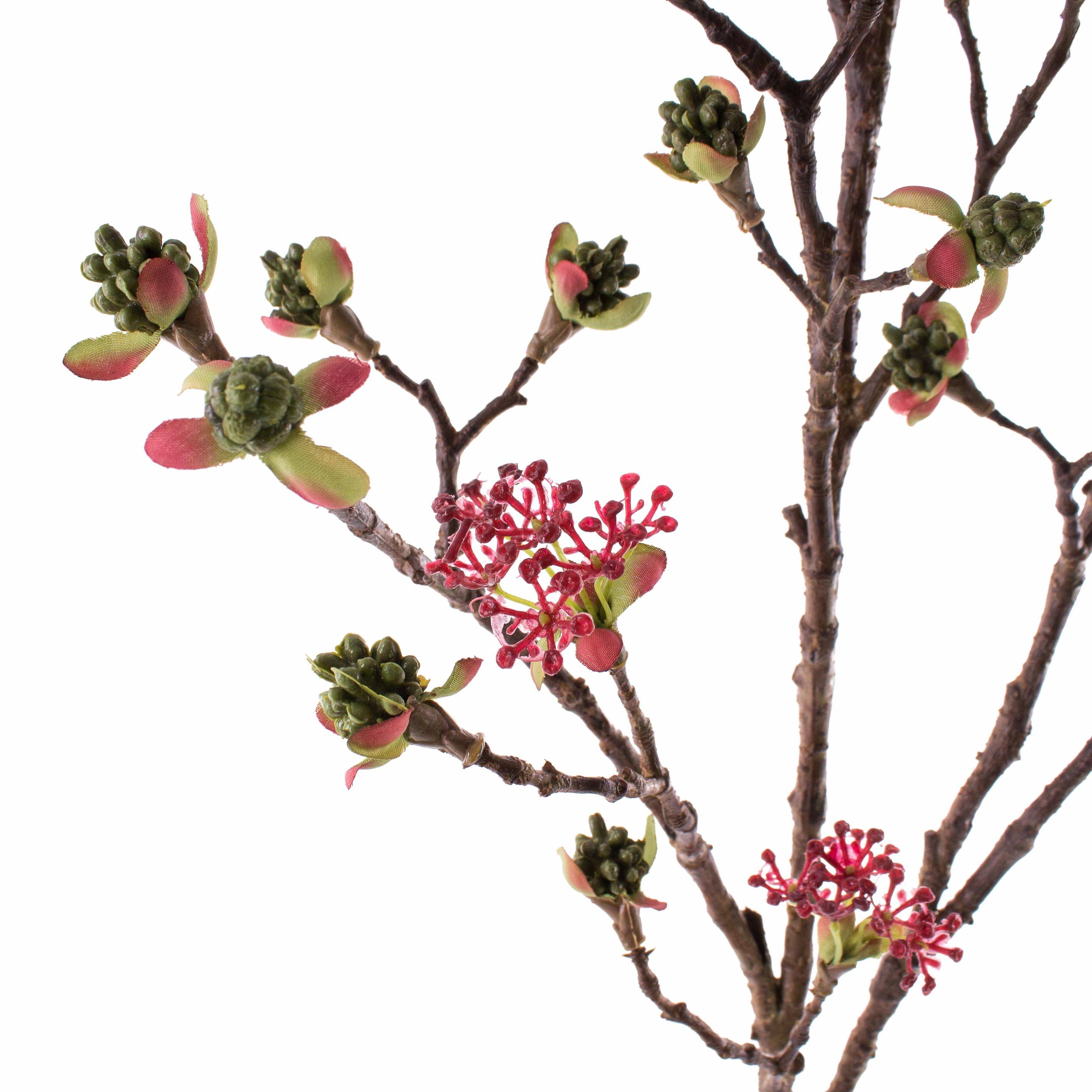 - Aux extrémités de la branche se trouvent des boutons fidèlement reproduits aux nuances rose et vert
