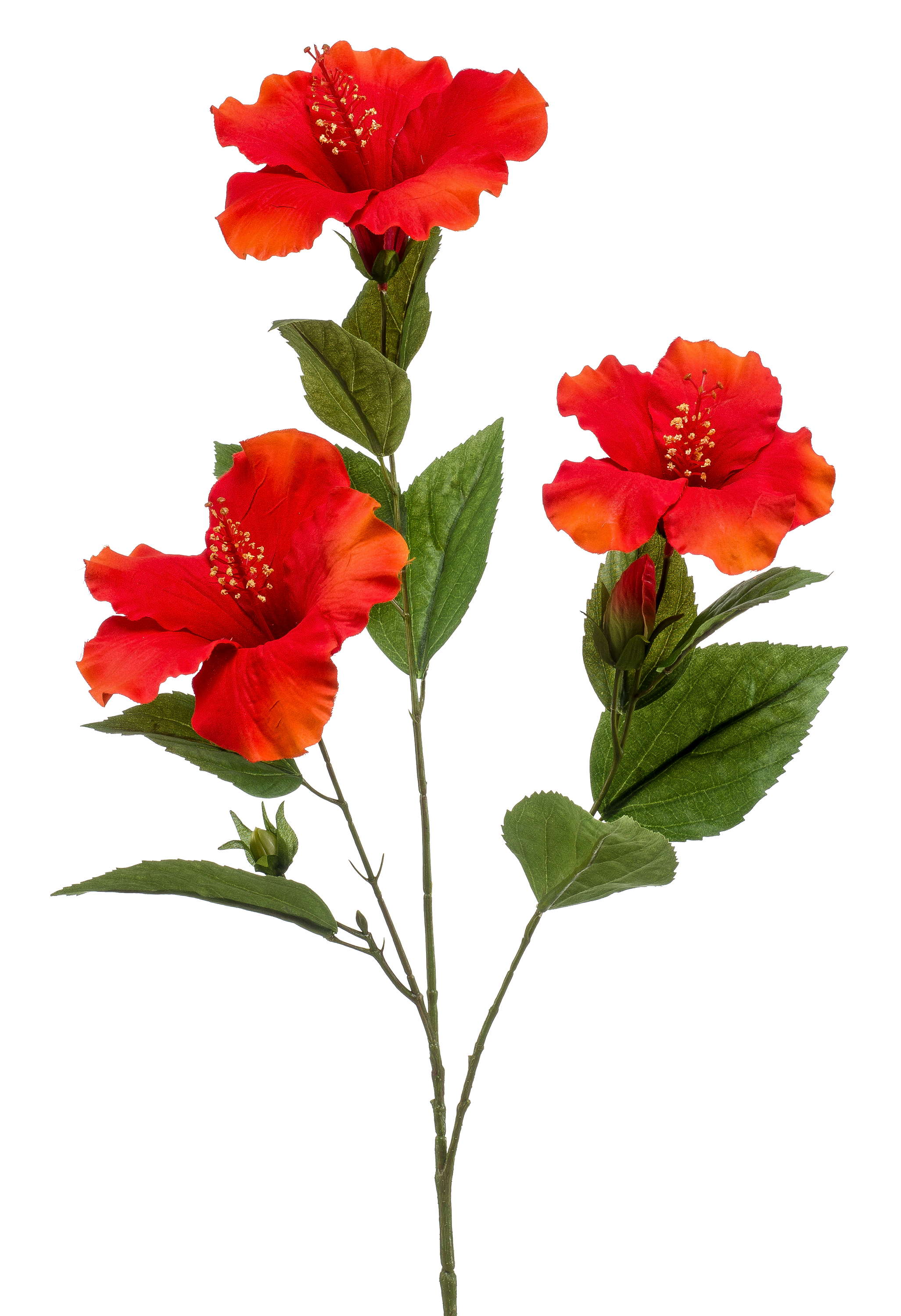 Branche d'hibiscus artificielle AMADOU avec fleurs, rouge, 80cm
