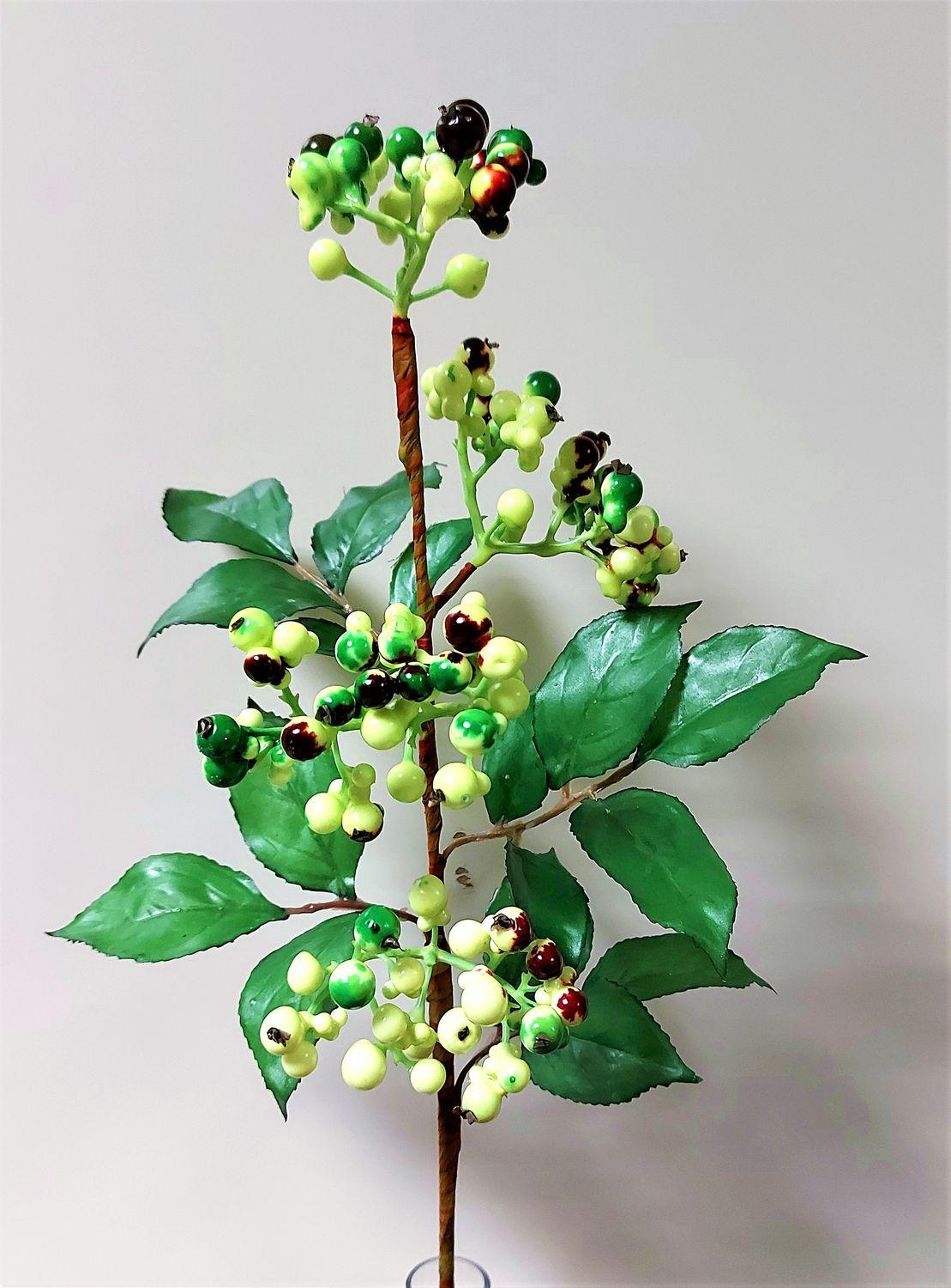Branche de baies de sureau artificielle CHATANGA avec des fruits, vert-rouge, 60cm