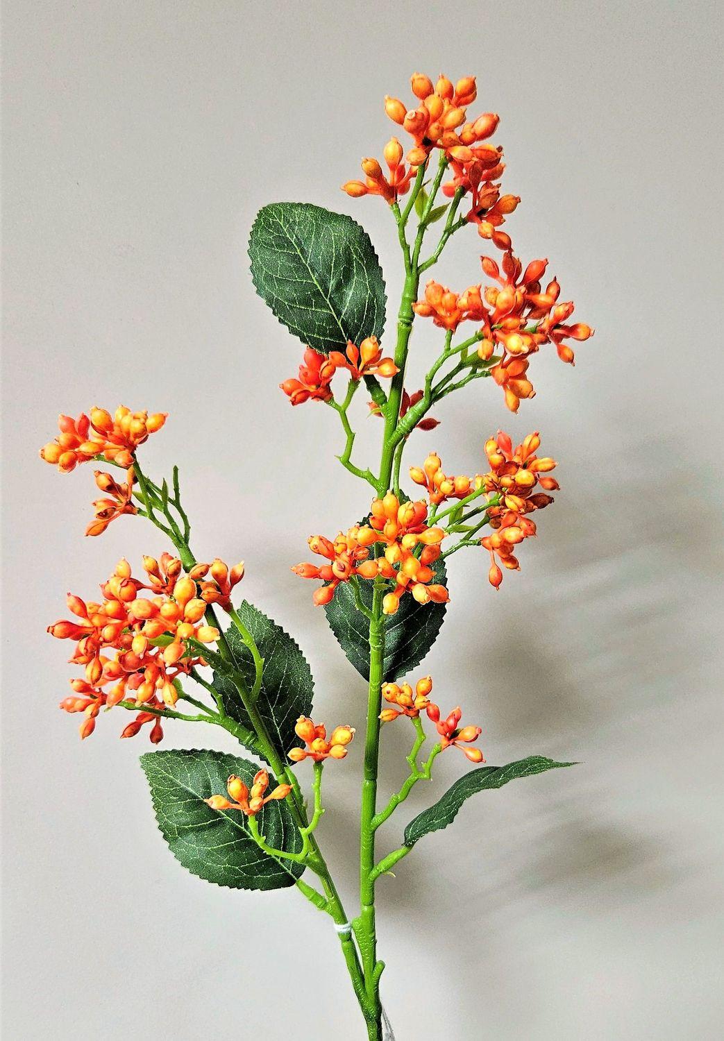 Branche de boule de neige décorative LABIBA avec des bourgeons, orange, 60cm