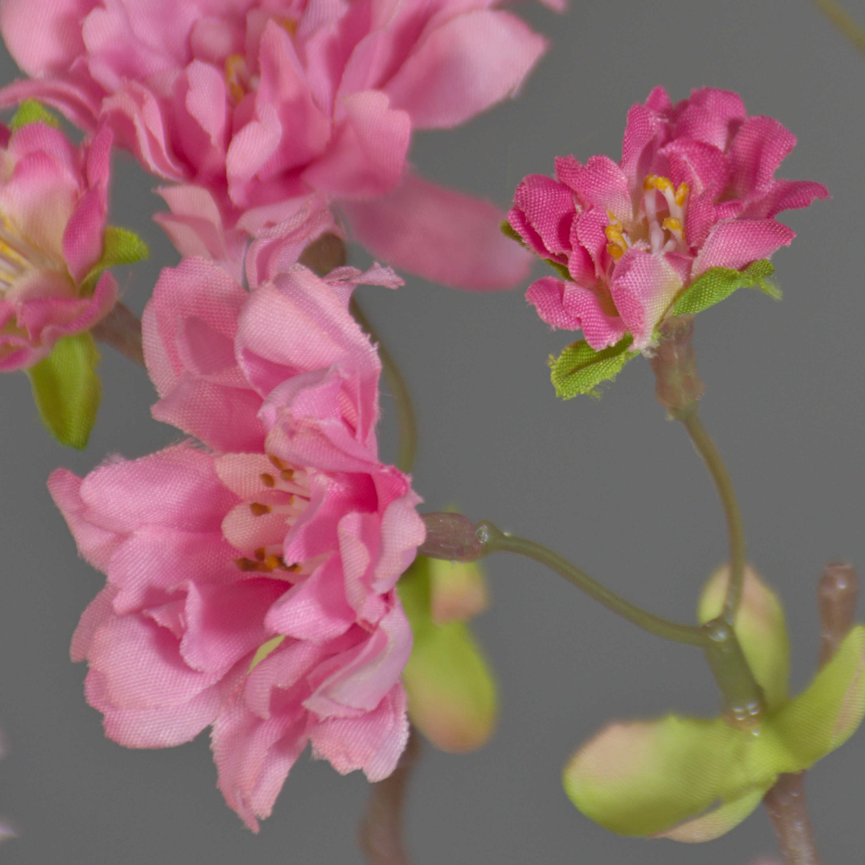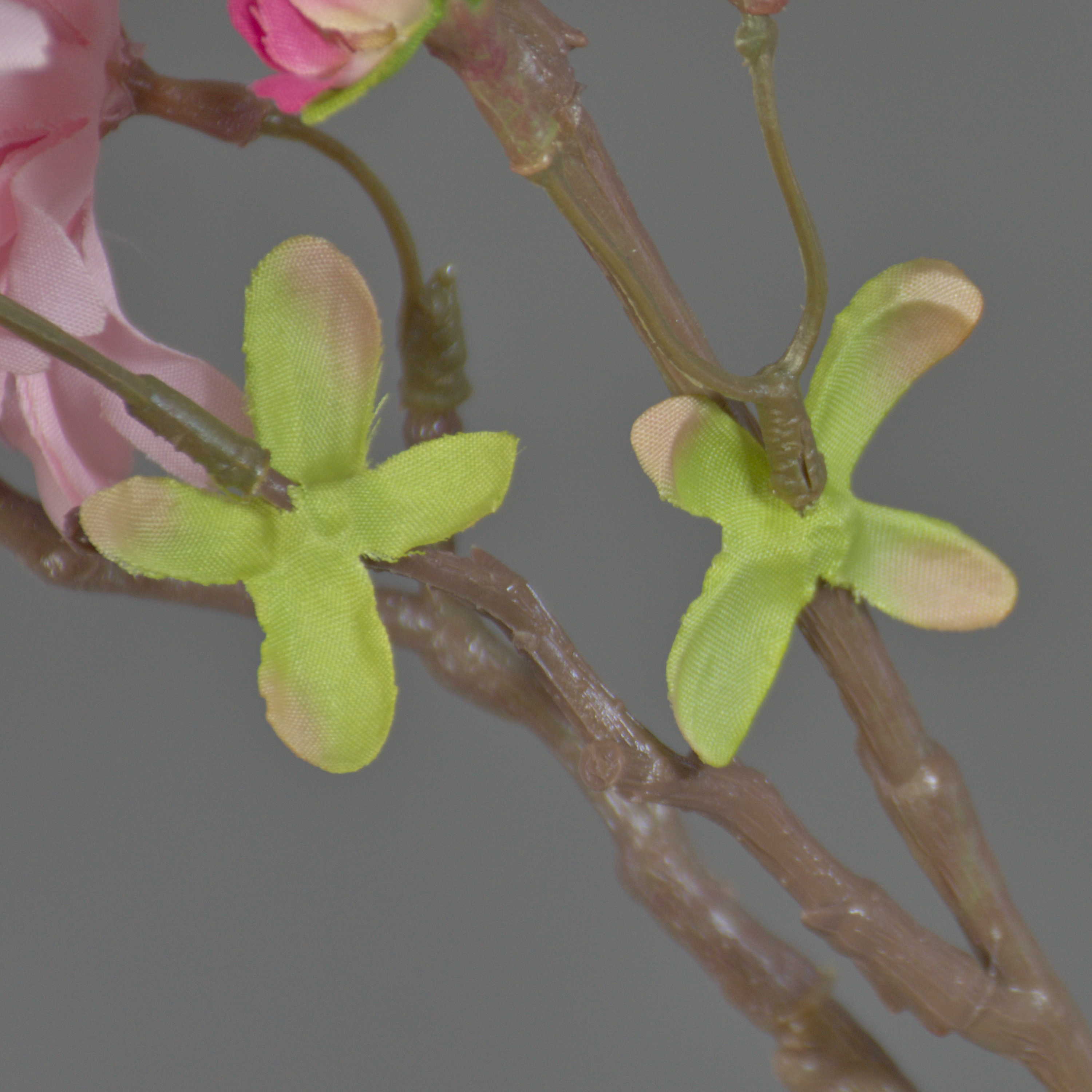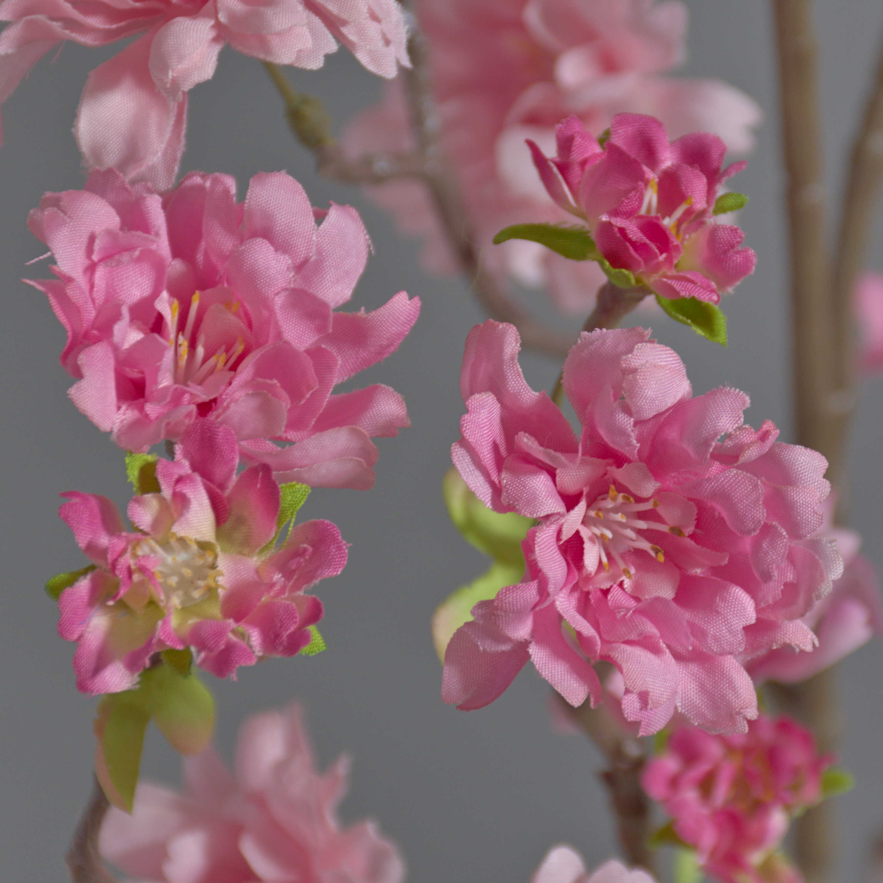 Jolie branche décorative KENZUKE avec environ 19 fleurs textiles de couleur rose pour une élégante décoration printanière. La branche de fleurs artificielles mesure au total environ 85 cm de long et sera idéale pour un vase à poser au sol.
