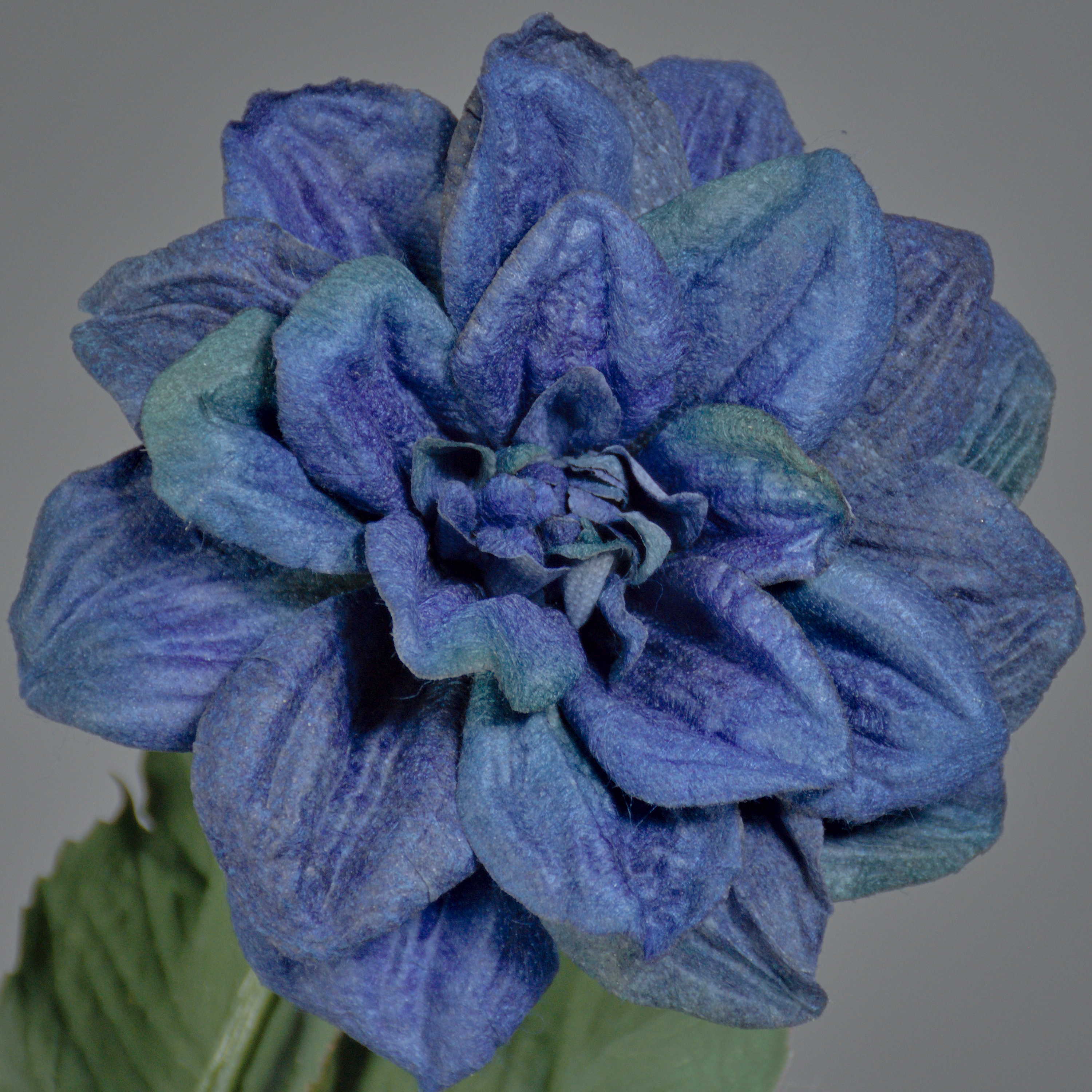Branche de fleurs artificielle Dahlia GINGER, collection écologique, bleu royal, 60cm, Ø10cm