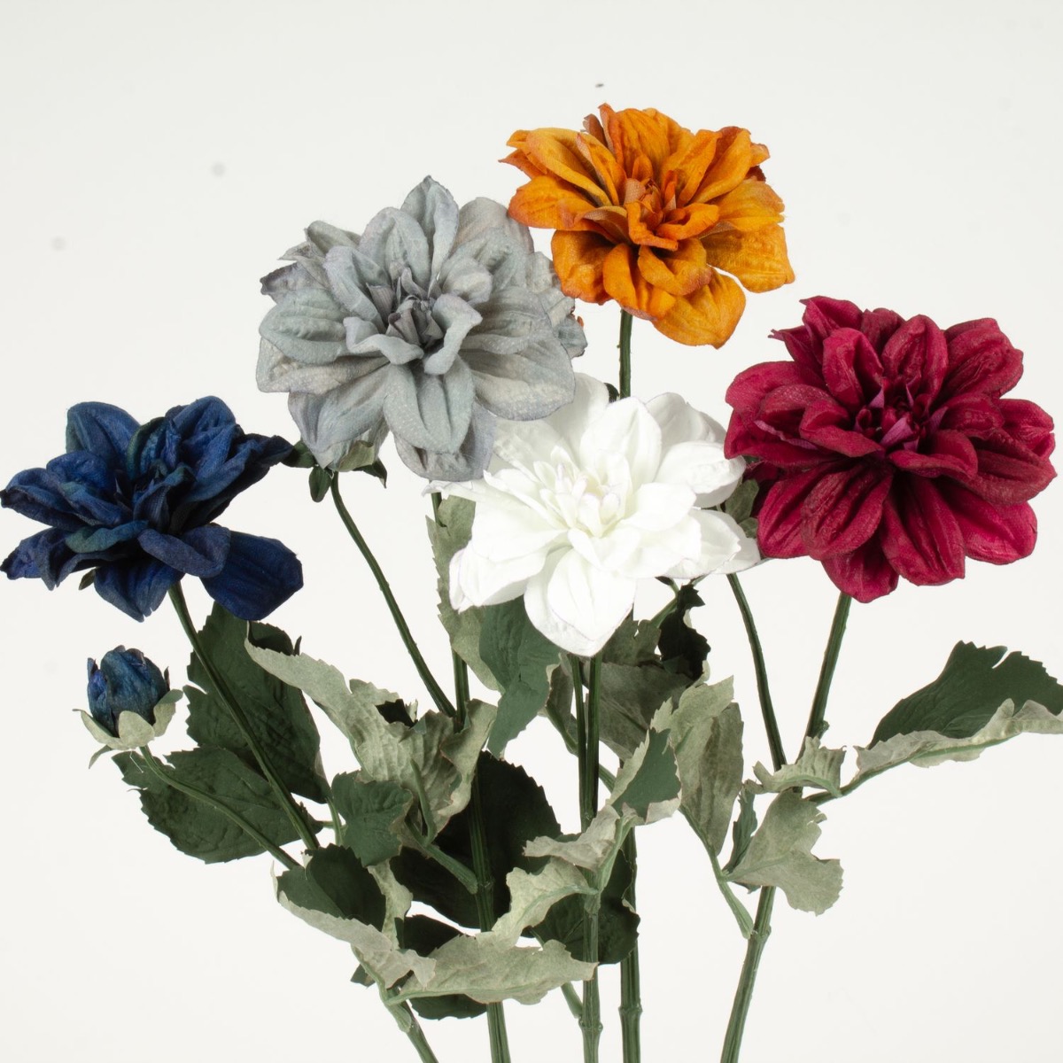 Branche de fleurs artificielle Dahlia GINGER, collection écologique, gris-bleu, 60cm, Ø10cm