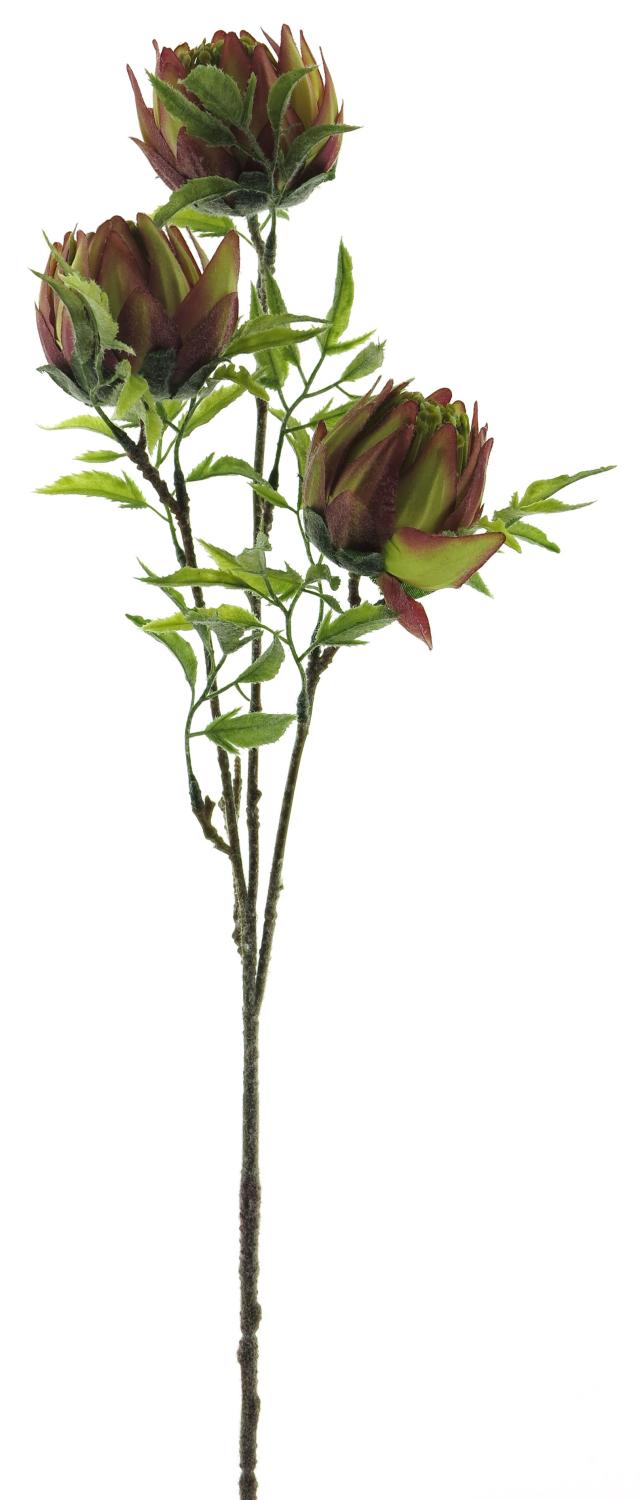 Branche de fleurs artificielles de Protea LIUJIA, rouge-vert, 75cm
