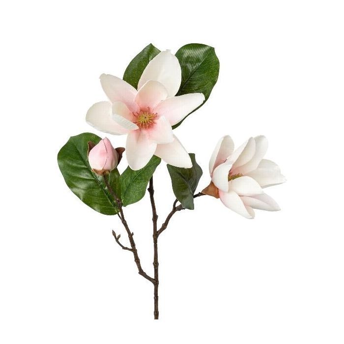 Branche de fleurs artificielles Magnolia PLORNE, rose clair-blanc, 70cm