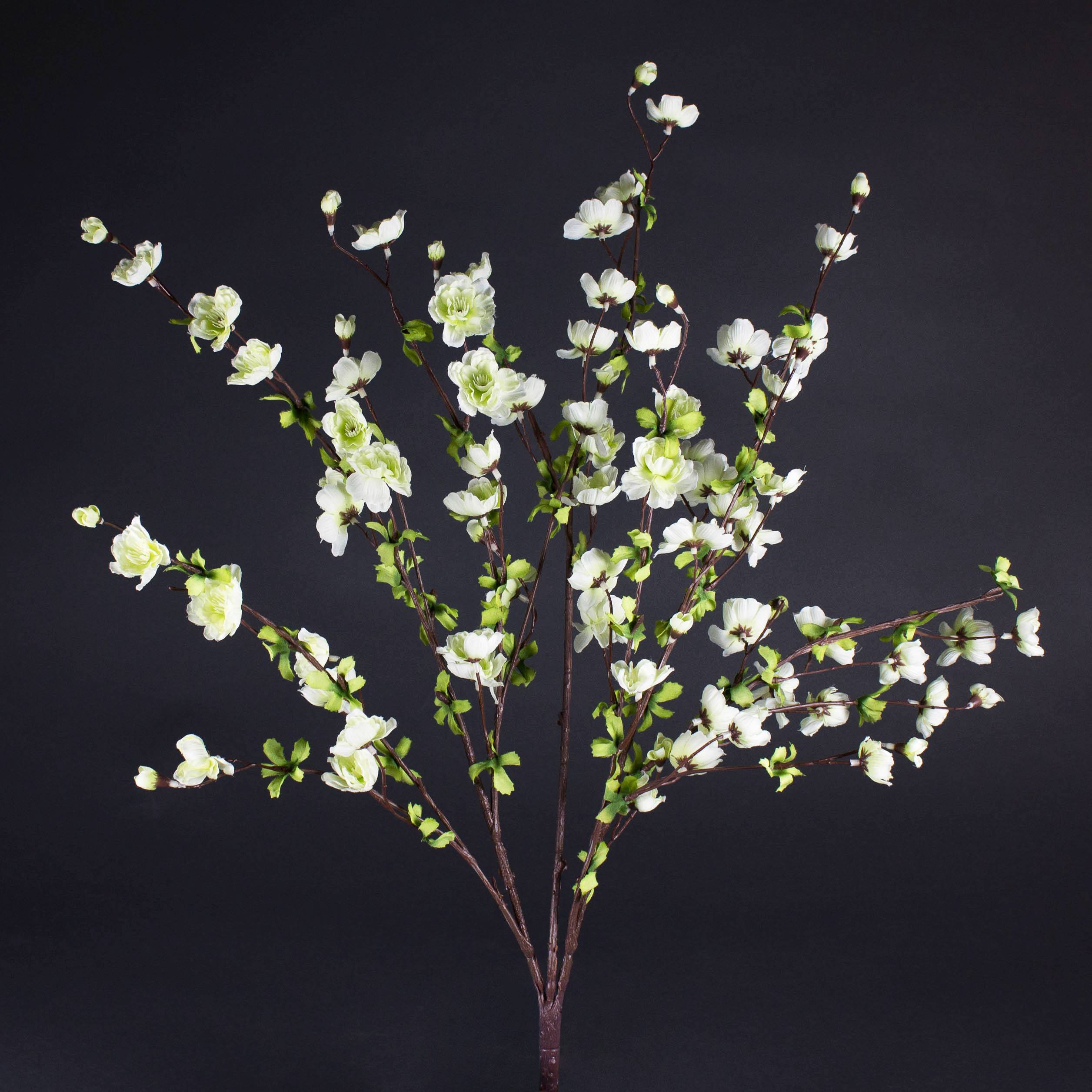 Jolie branche de fleurs de cerisier en soie de couleur crème-blanche. Cette branche artificielle mesure au total environ 65 cm de long.