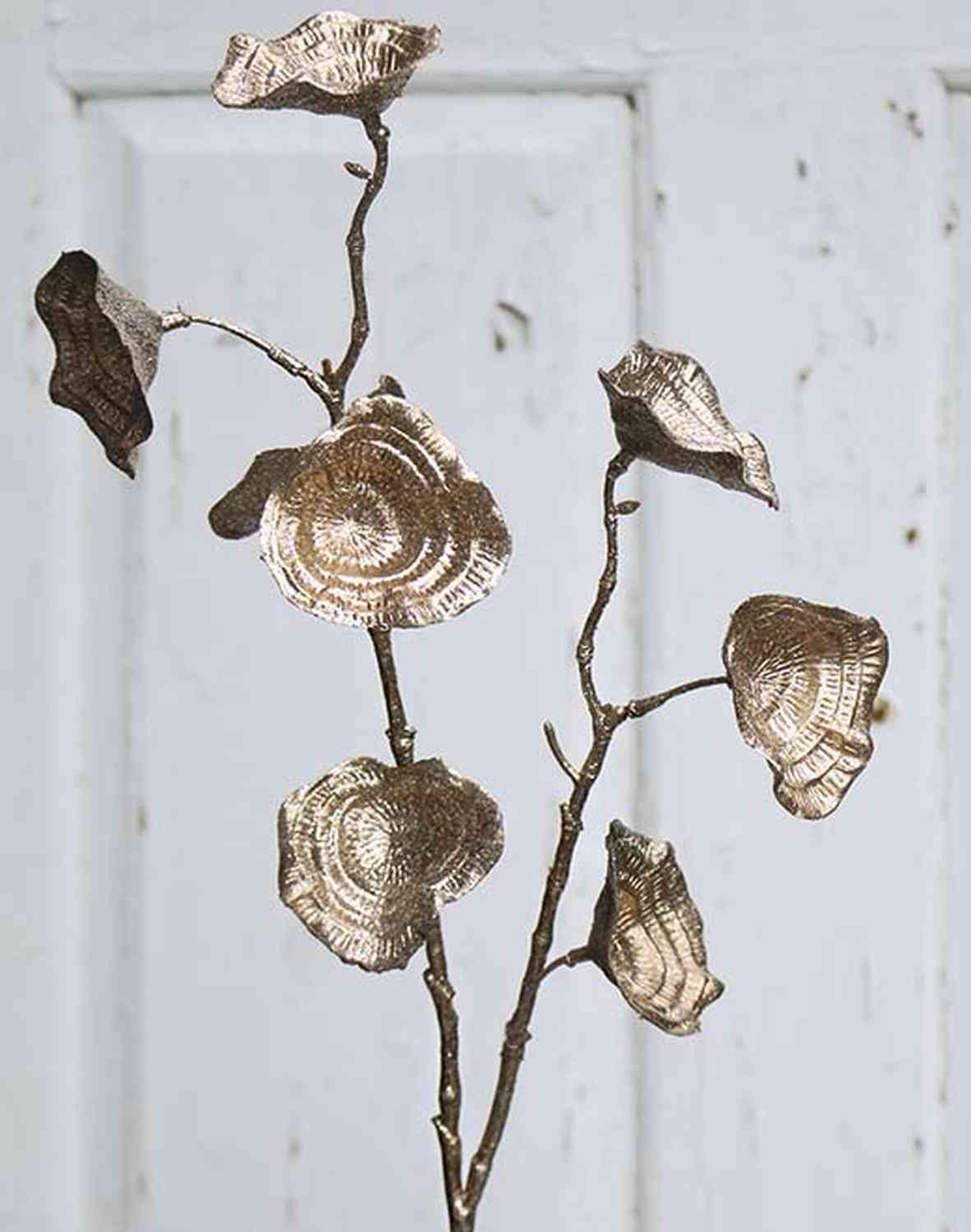 Branche de ginkgo artificielle ARWID avec paillettes, champagne, 55cm