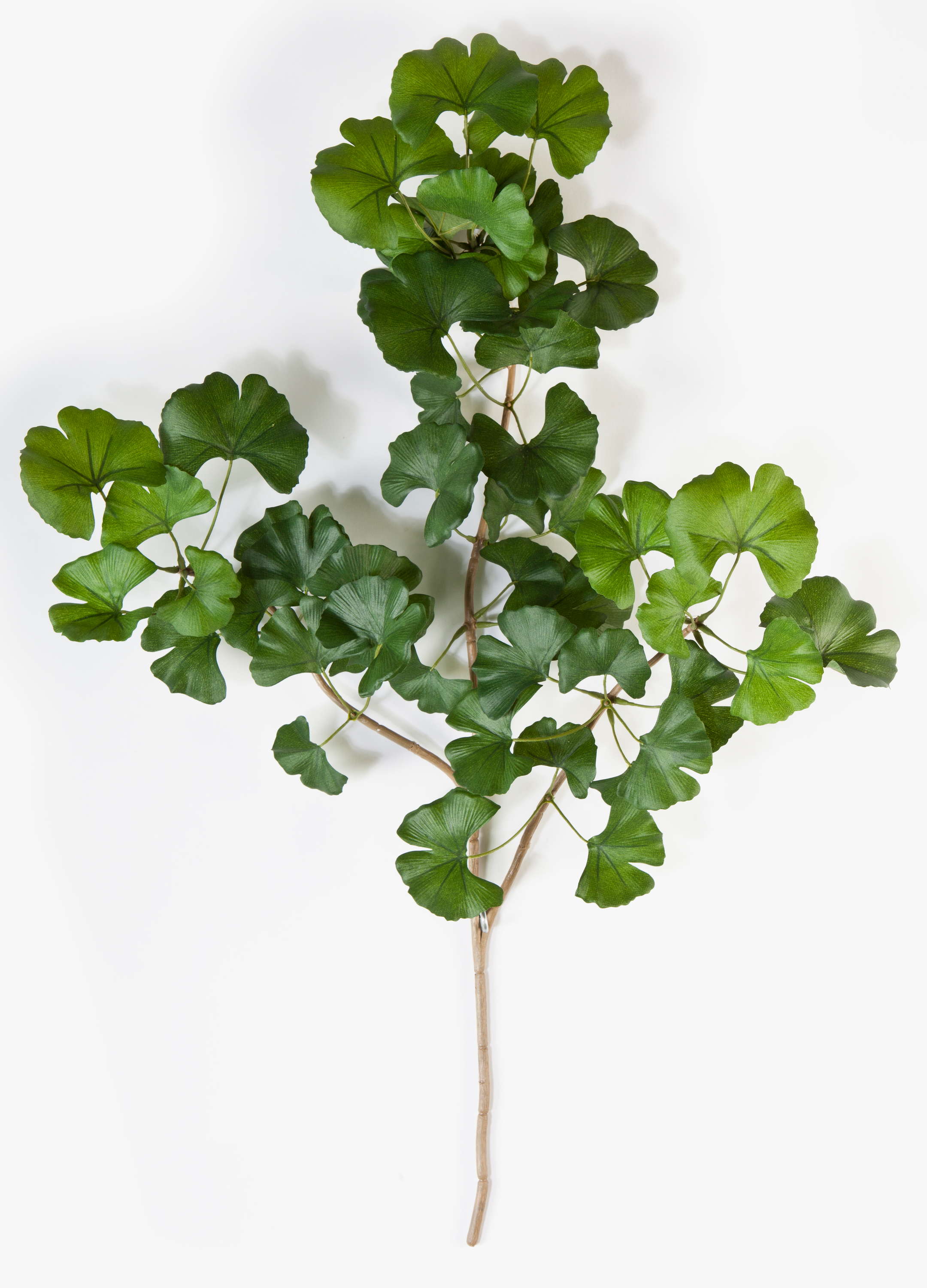 Branche de ginkgo artificielle BAO, diff. inflammable, vert, 60cm