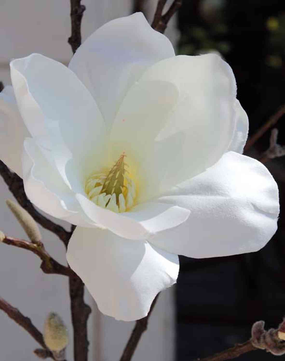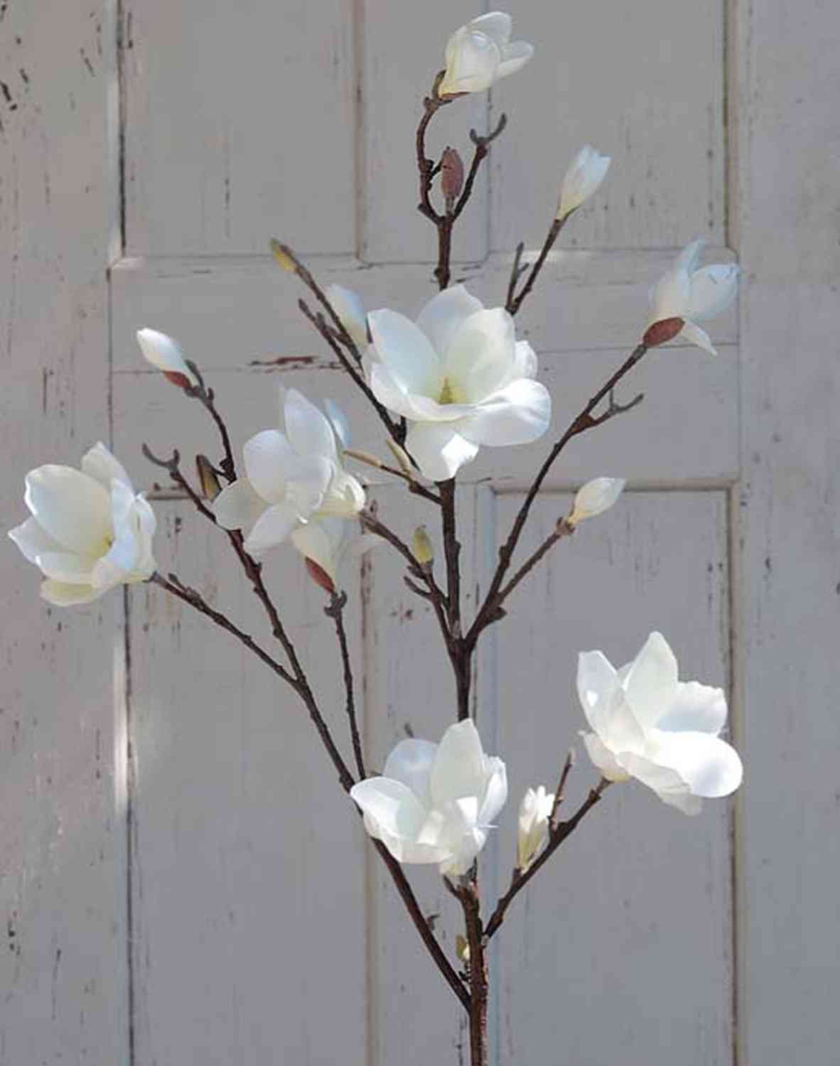 Les fleurs de magnolia en tissu YONA de couleur crème-blanc avec une longueur totale de 130 cm ajouteront une touche raffinée à votre salon.