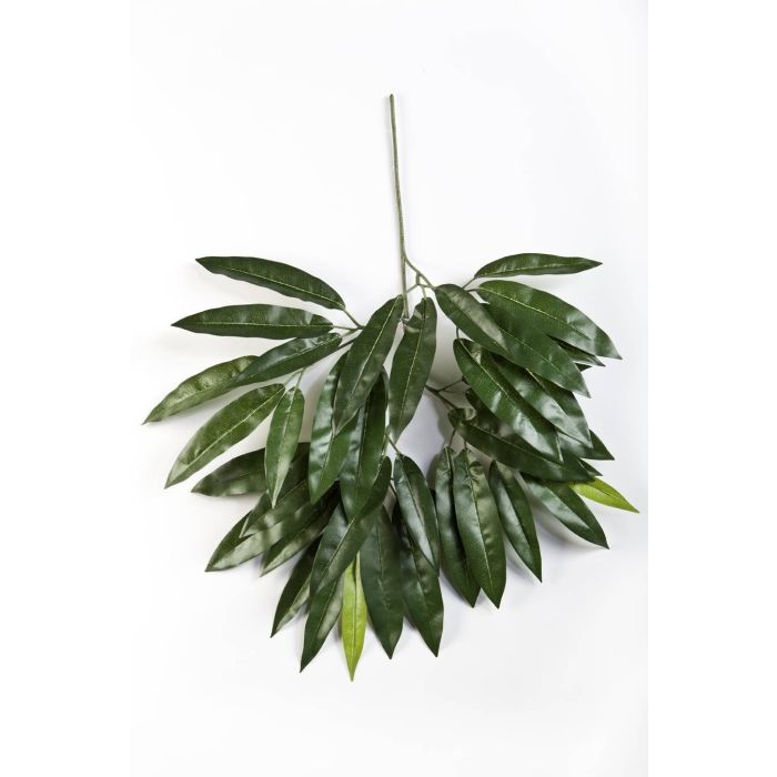 - Pourvue d'env. 40 longues feuilles pointues de couleur vert clair et foncé avec des branches vertes
