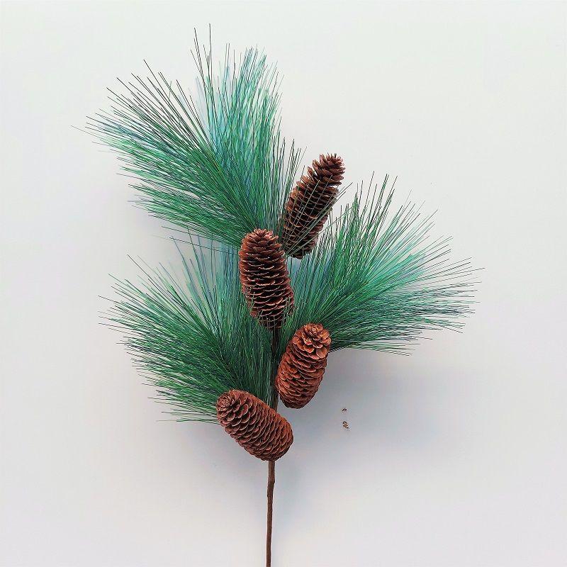 - La branche est densément garnie de longues et fines aiguilles, les pommes de pin sont disposées en quinconce, d'aspect naturel en matériau de haute qualité