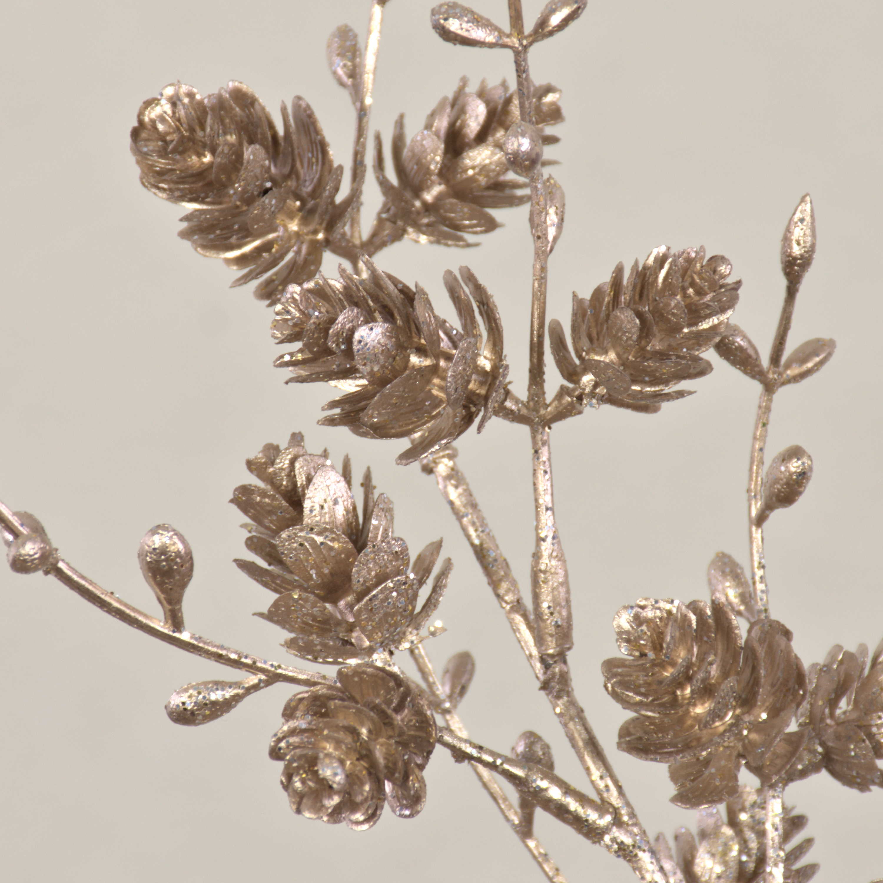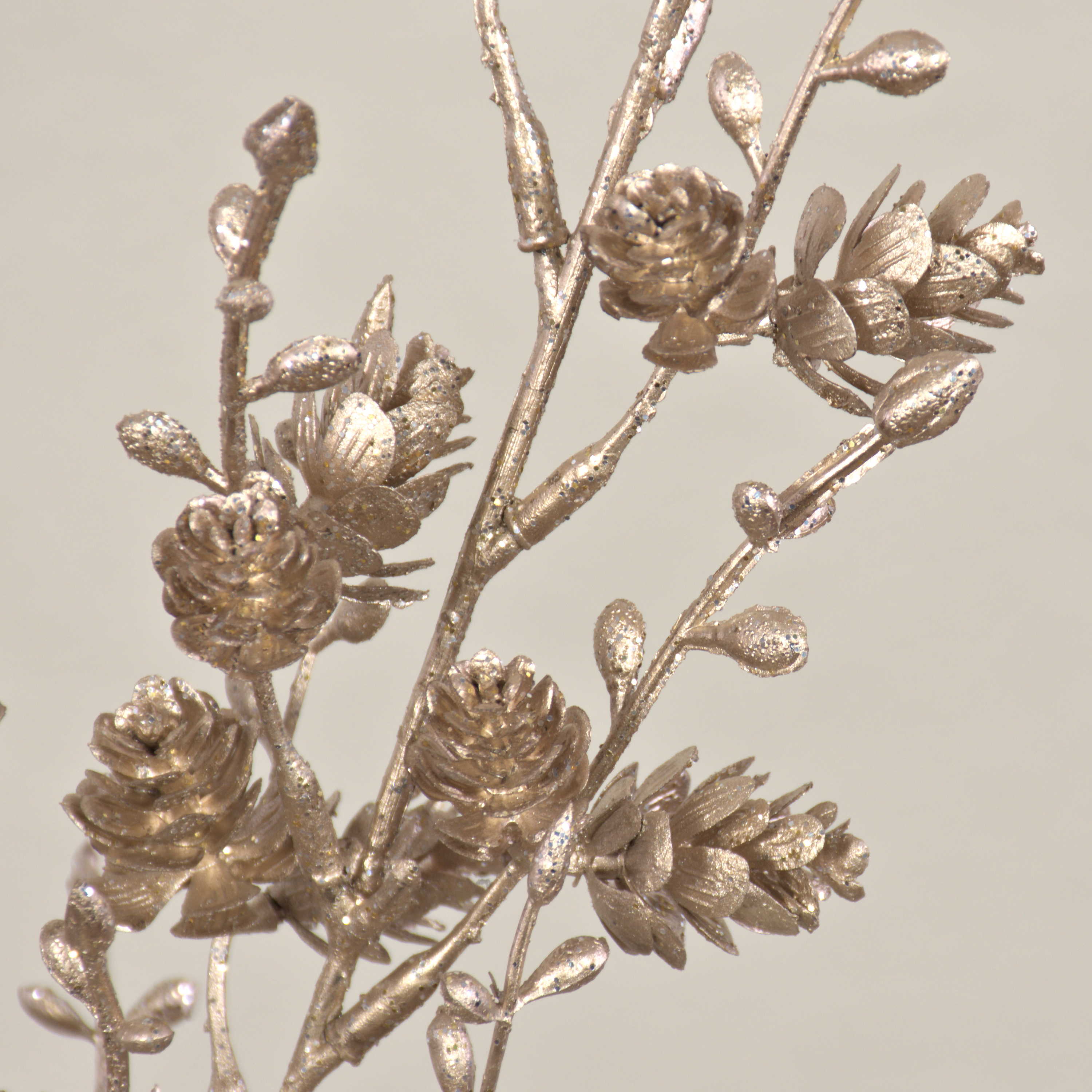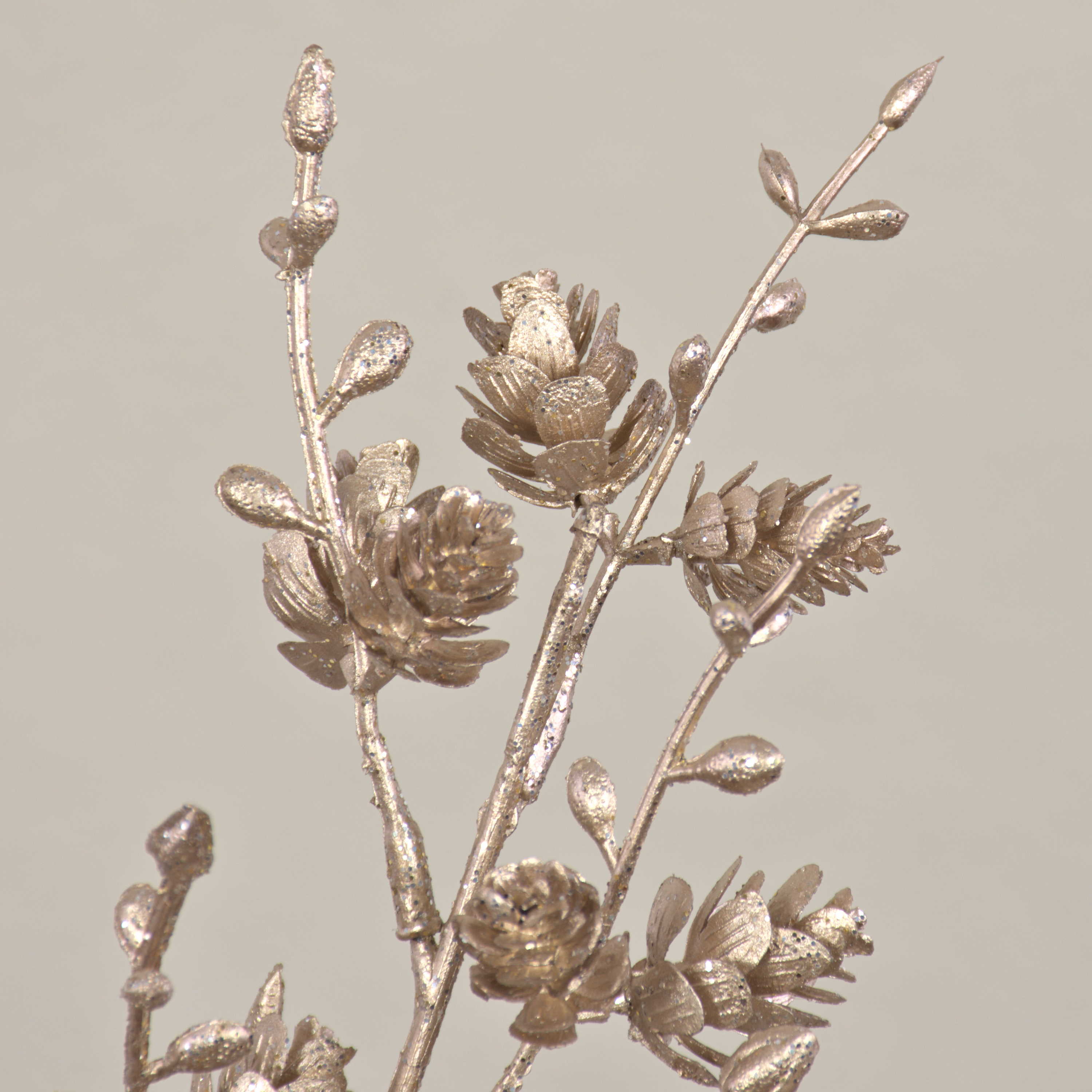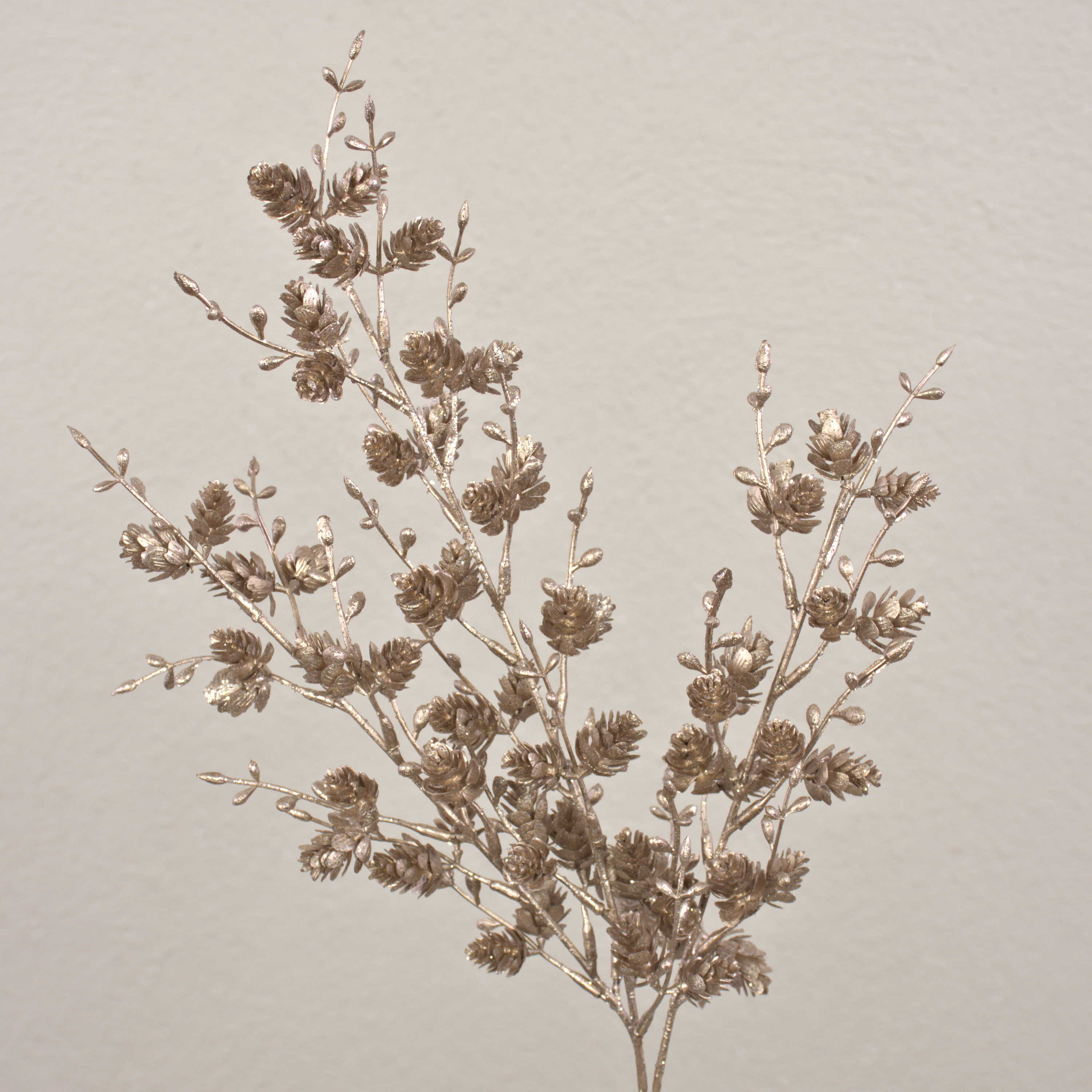 Branche de pin décorative EMERIC avec pommes de pin, or, 45cm