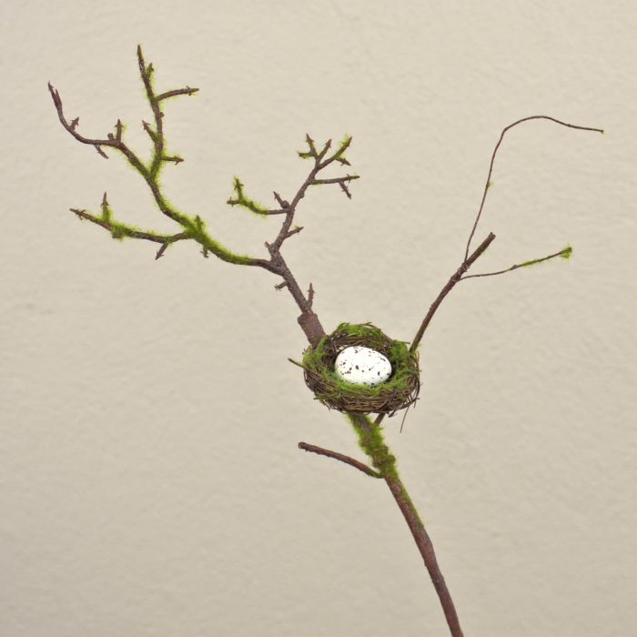 - Cette branche avec le nid d'oiseau constituera une décoration exceptionnelle pour le printemps, fixée dans un cache-pot à l'aide d'une mousse florale, elle attirera à coup sûr tous les regards dans votre intérieur