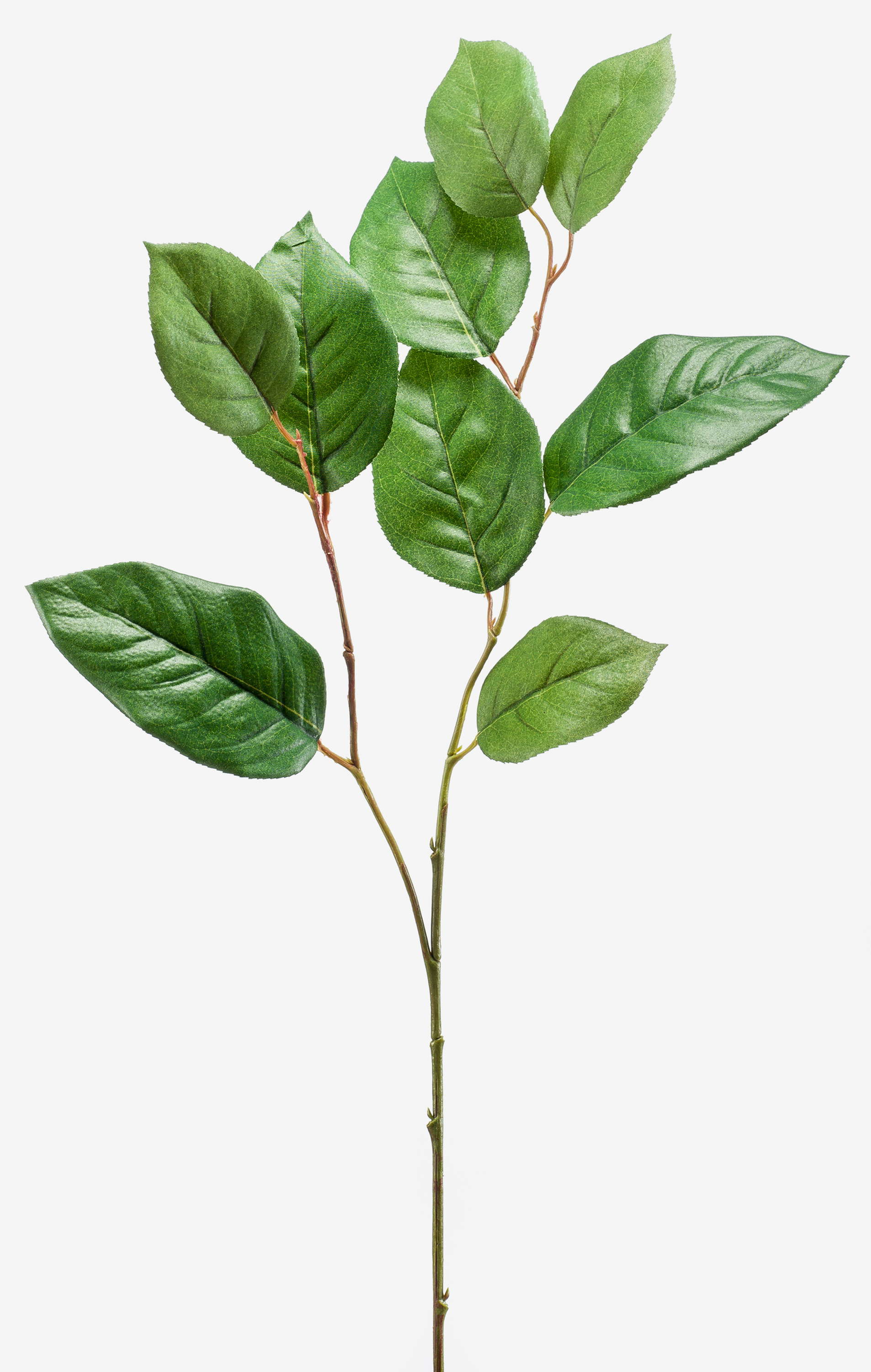 Branche artificielle pourvue d'environ 9 grandes feuilles vertes et mesurant au total environ 75 cm de long.