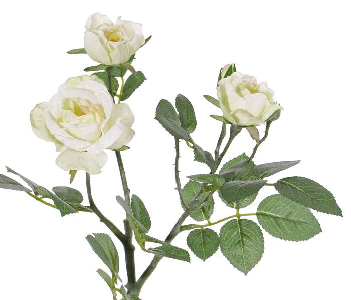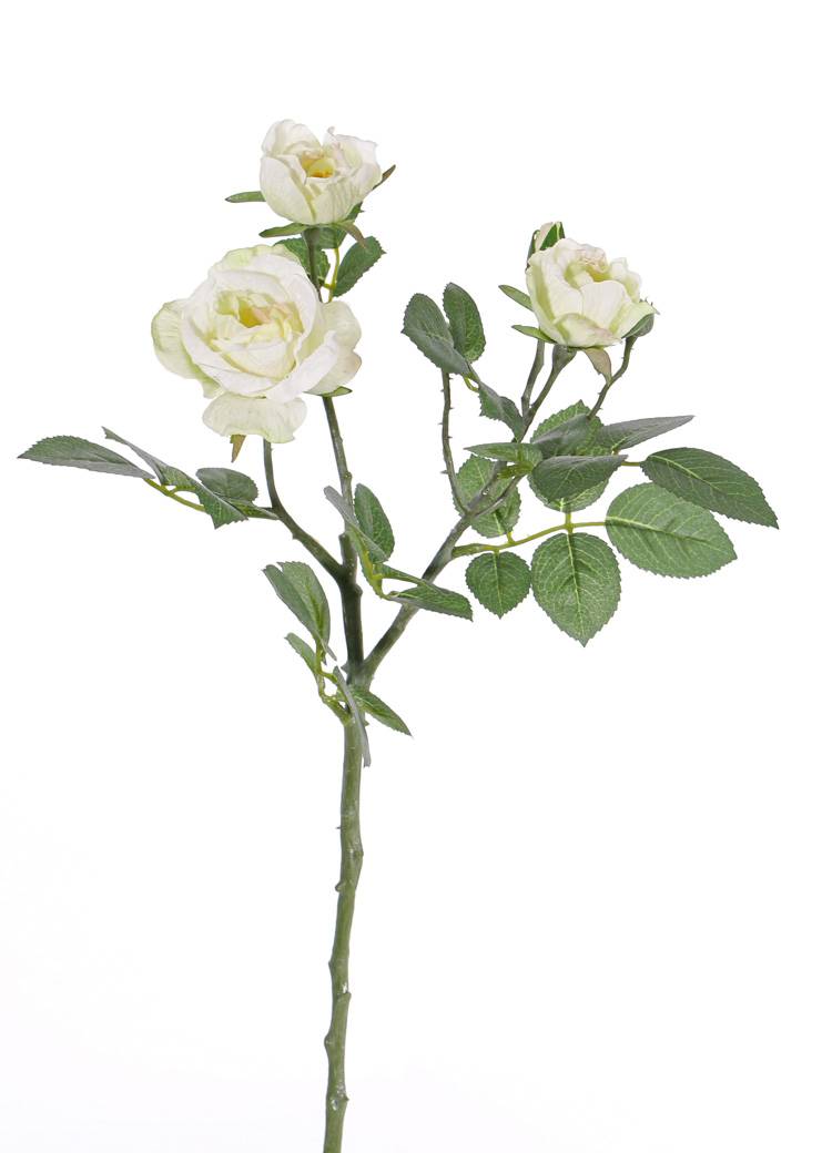Branche de rose artificielle CORALEE, blanc-vert, 50cm, Ø3-7cm